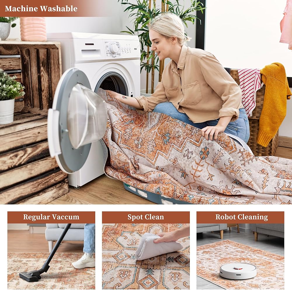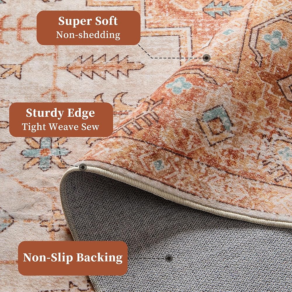 【Perfect for Any Room】This vintage area rug is versatile, our rugs for living room, bedroom, dining room, kitchen and other high-traffic areas providing effortless style even, it can also be used as a decor in your study, hearth area, family room, guest room, home office. This washable rug is a good choice for your home