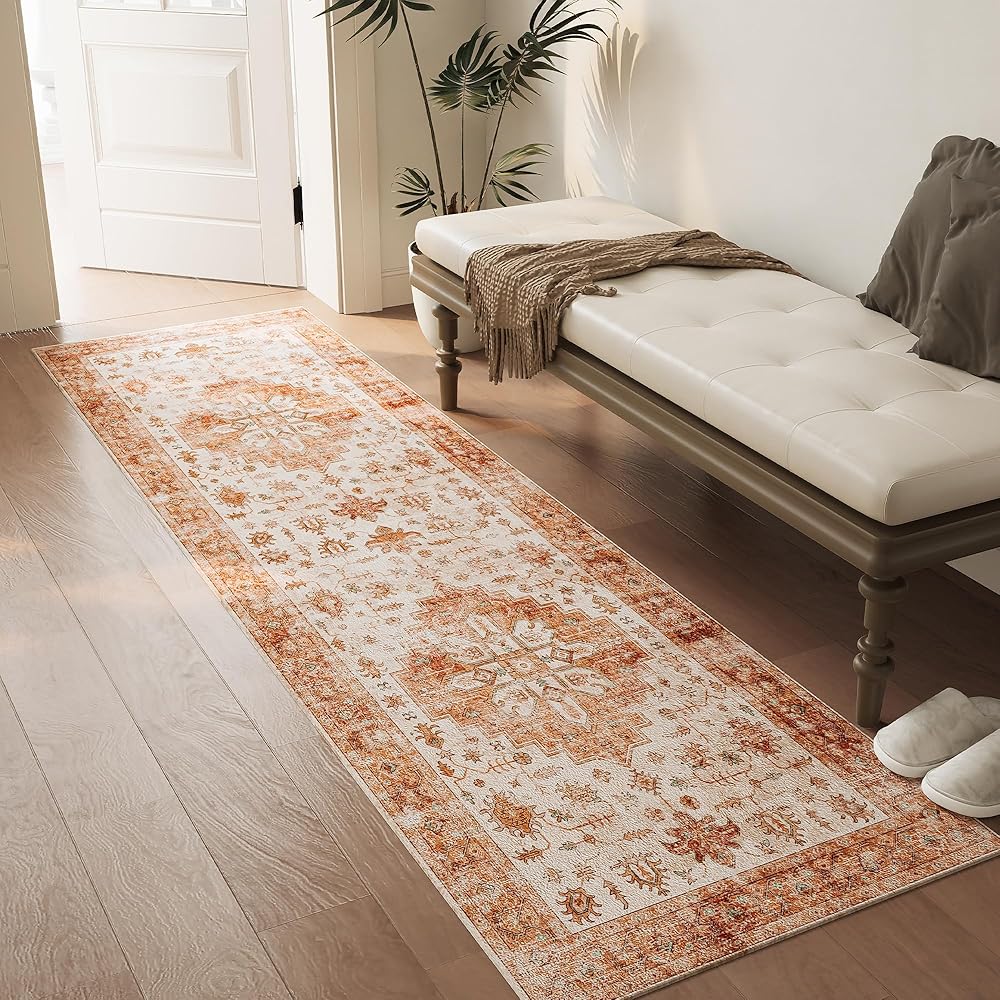 【Classic Vintage Design】This washable rugs offering vintage, traditional, Medallion, classic styles, you'll always find a rug to tie your room décor together with a stylish and timeless classic print rug to bring a fresh and perfect color to any room