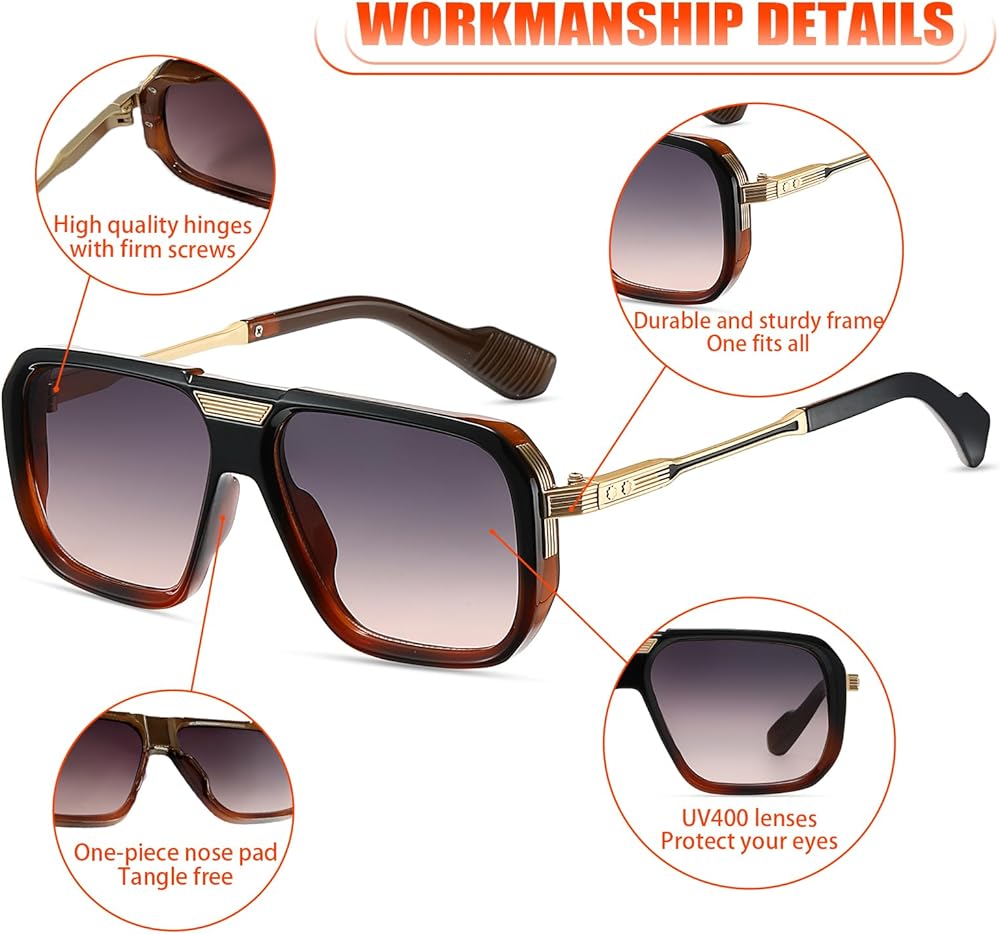 Perfect For Different Occasions: These trendy rectangle sunglasses will be great choices for daily fashion accessories. They are great shades for driving, disco, parties, concert, hip hop, beach time etc. Have you standing out from the crowd