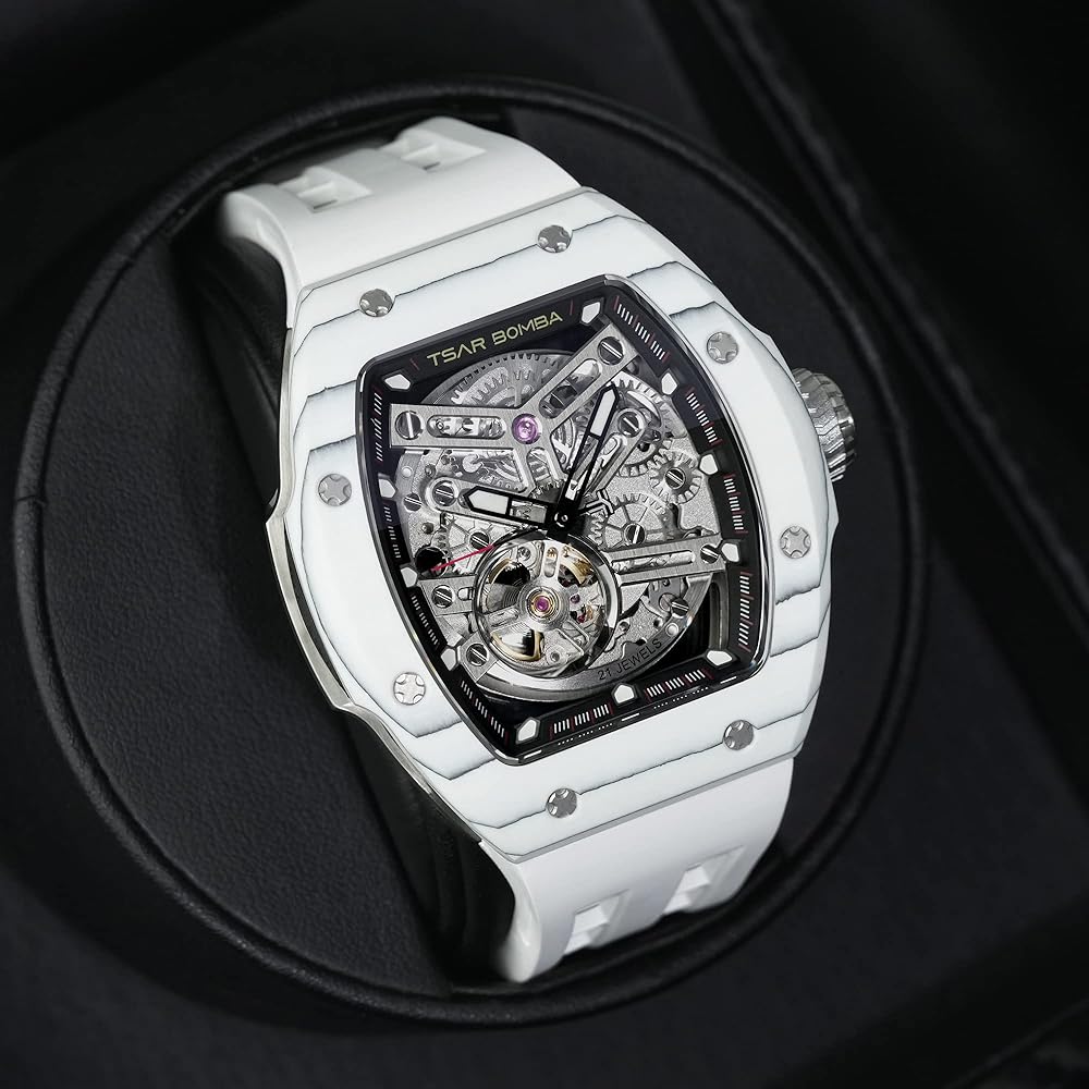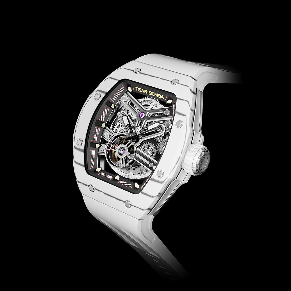 Luxury Men's Automatic Watch Mechanical Japanese Movement Sapphire Crystal 50M Waterproof Carbon Fiber Tonneau Unique Business Gifts for Men Luminous Wristwatch Analogue Fashion