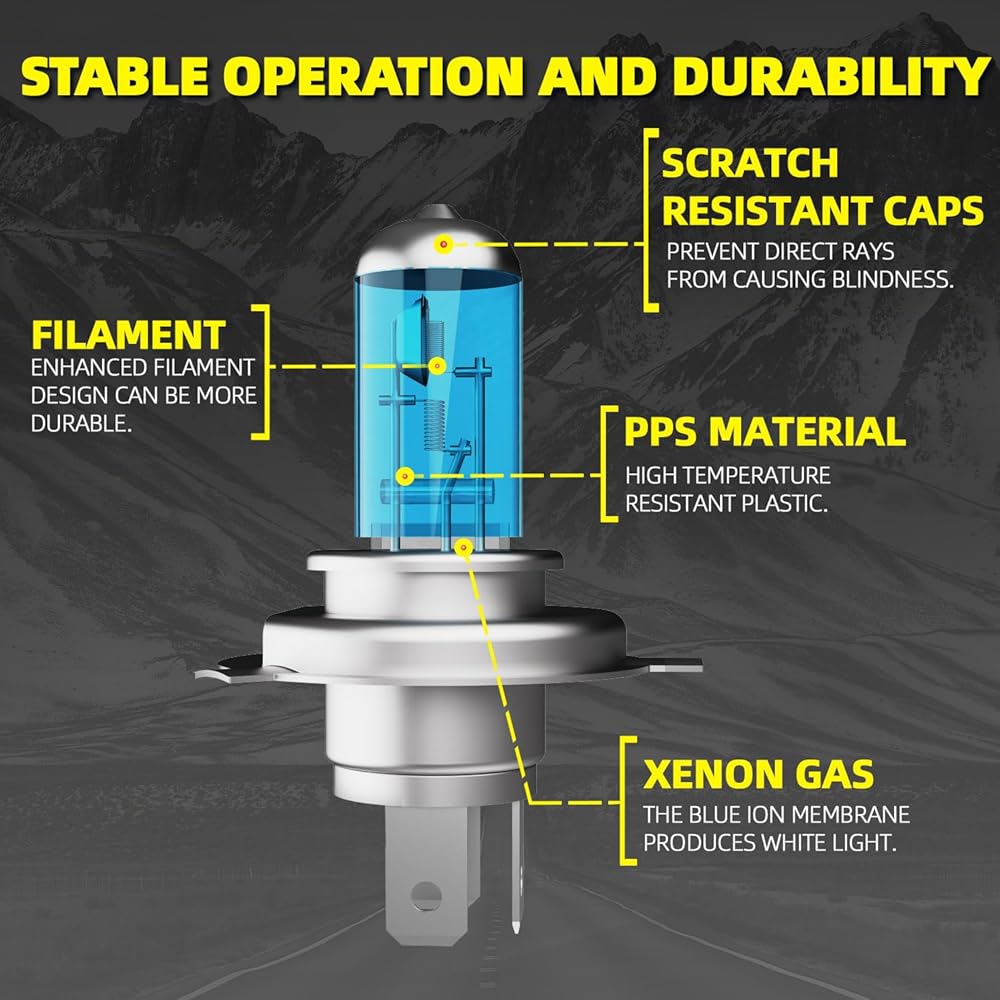 Over 30,000 Hours Lifespan: The fog light bulbs are filhalogen with Xenon gas, which helps helps to slow down the process of oxidizing the tungsten inside.With IP68 waterproof dustproof design, our halogen bulbs can last longer.