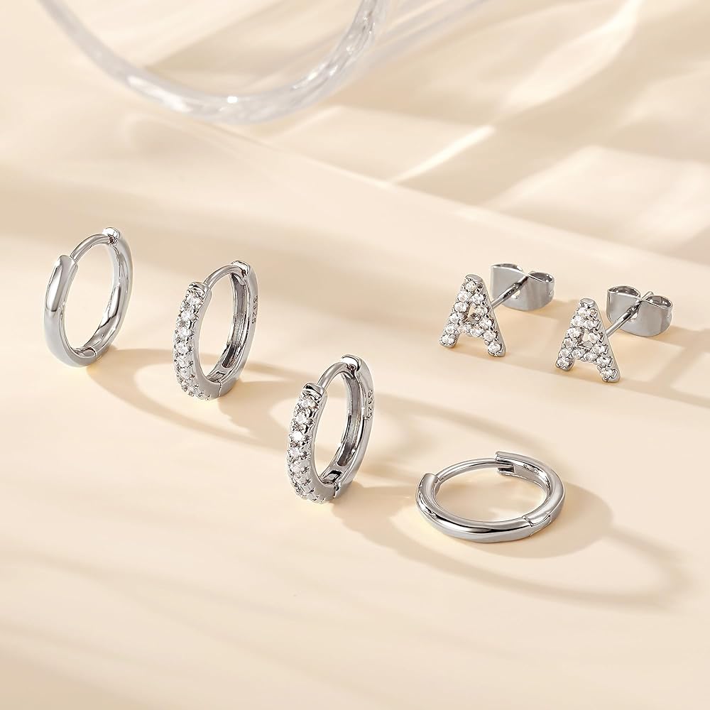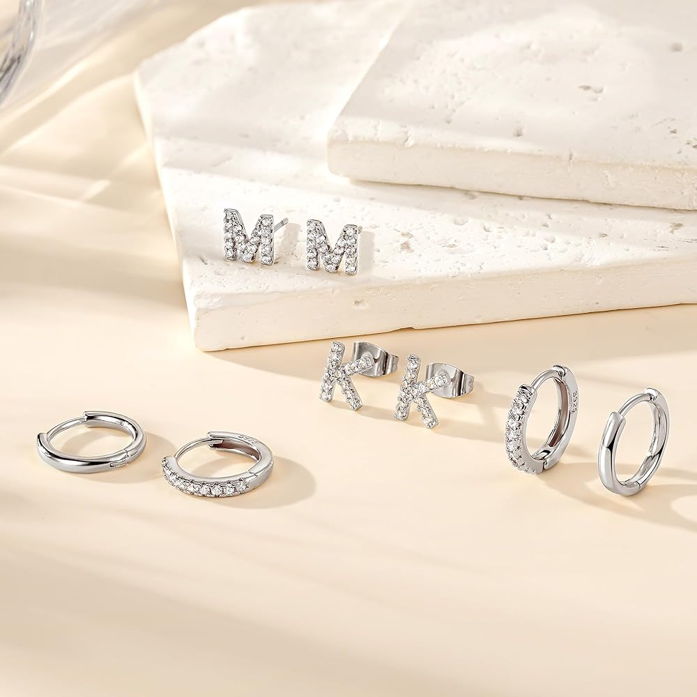 【Gold Earrings Set】: You will get 3 pairs of gold earrings in different styles, including hoop earrings, CZ huggie earrings and initial stud earrings. They are suitable for wearing together or alone, and you can freely combine and match them to wear on different parts of the ears.