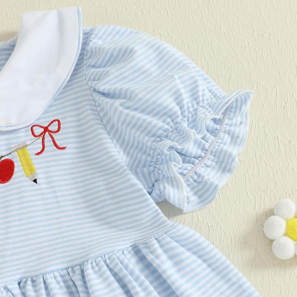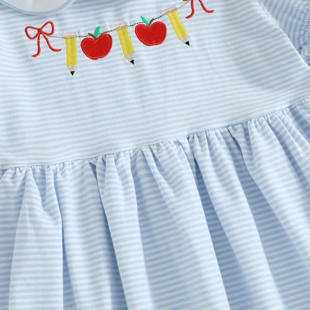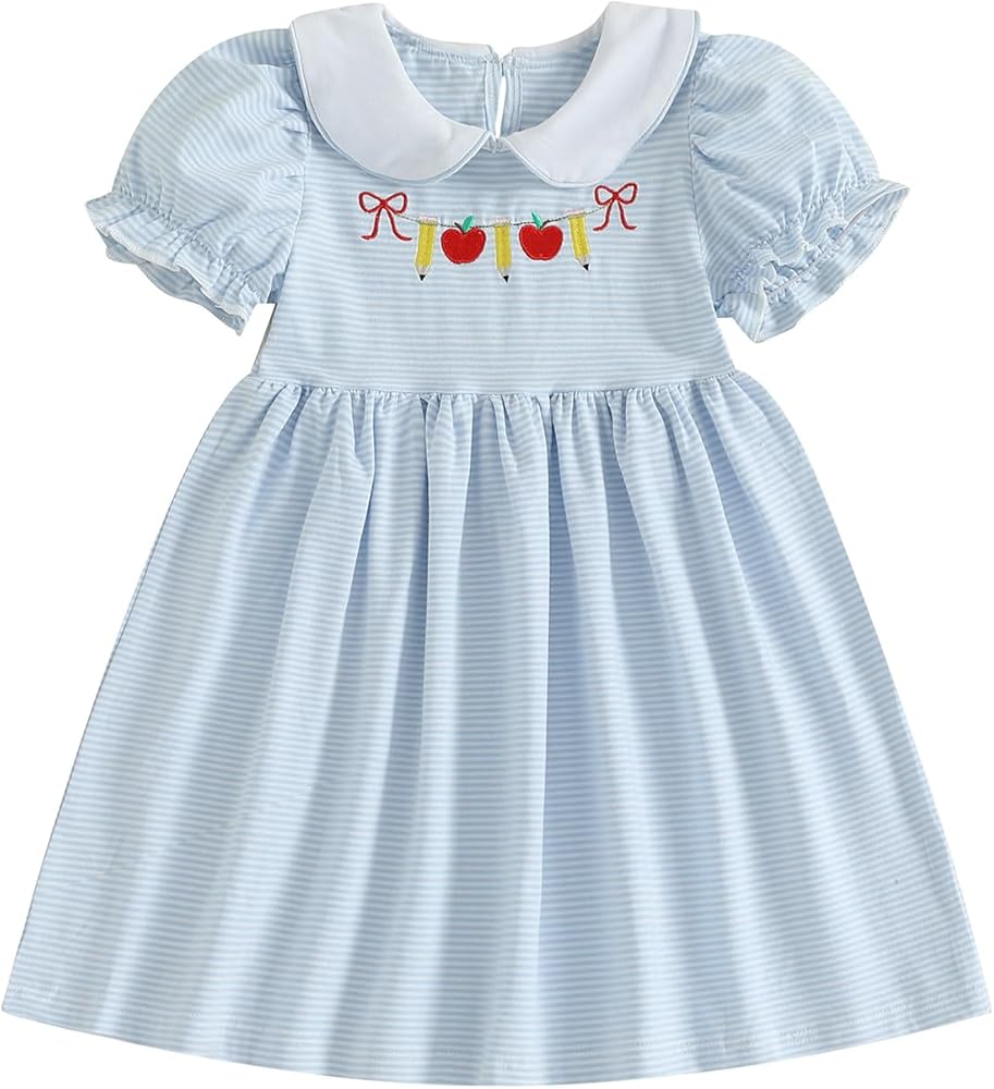 Little Girls A-line Plaid Dress Summer Short Sleeve Doll Collar Apple Embroidery Dress