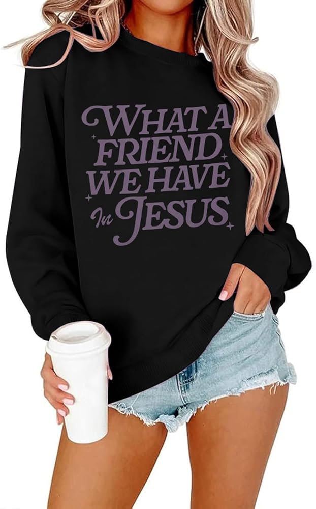 Features: Christian sweatshirts, jesus sweatshirts for women, jesus paid it all sweater, what a friend we have in jesus sweatshirt, faith sweatshirt, religious hoodies for women, bible verse sweatshirt, classic crew neck long sleeve pullover tops.
