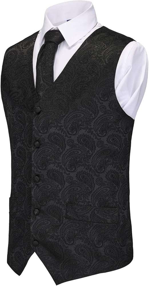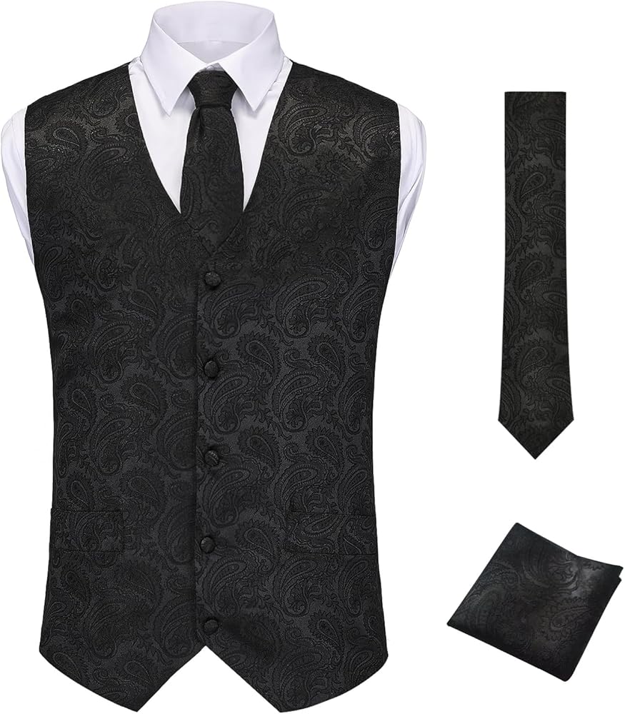 Step into the spotlight with this exquisitely crafted Men's Suit Vest, Tie, and Bow Tie Set, a complete ensemble designed to redefine sophistication for weddings, galas, halloween,party and formal celebrations. Meticulously curated to harmonize tradition with contemporary flair, this set includes a tailored waistcoat, matching necktie, paisley-print handkerchief, and a coordinating pocket square. Every detail is crafted to perfection, ensuring you radiate confidence and refinement at every occasion.