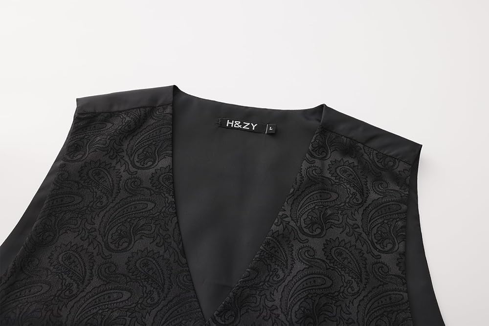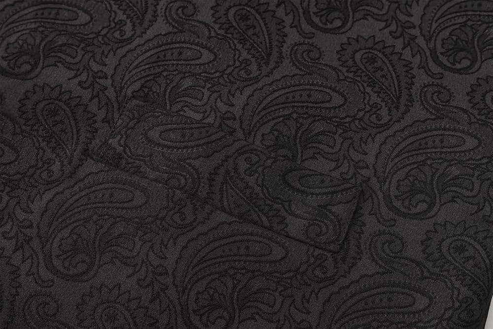 Fabric & Finish: Constructed from a premium woven polyester blend, the waistcoat boasts a subtle textured finish with a discreet solid-colored base (available in classic black, gold,blue and pink). Delicate paisley motifs are intricately woven into the fabric, adding a touch of understated luxury.