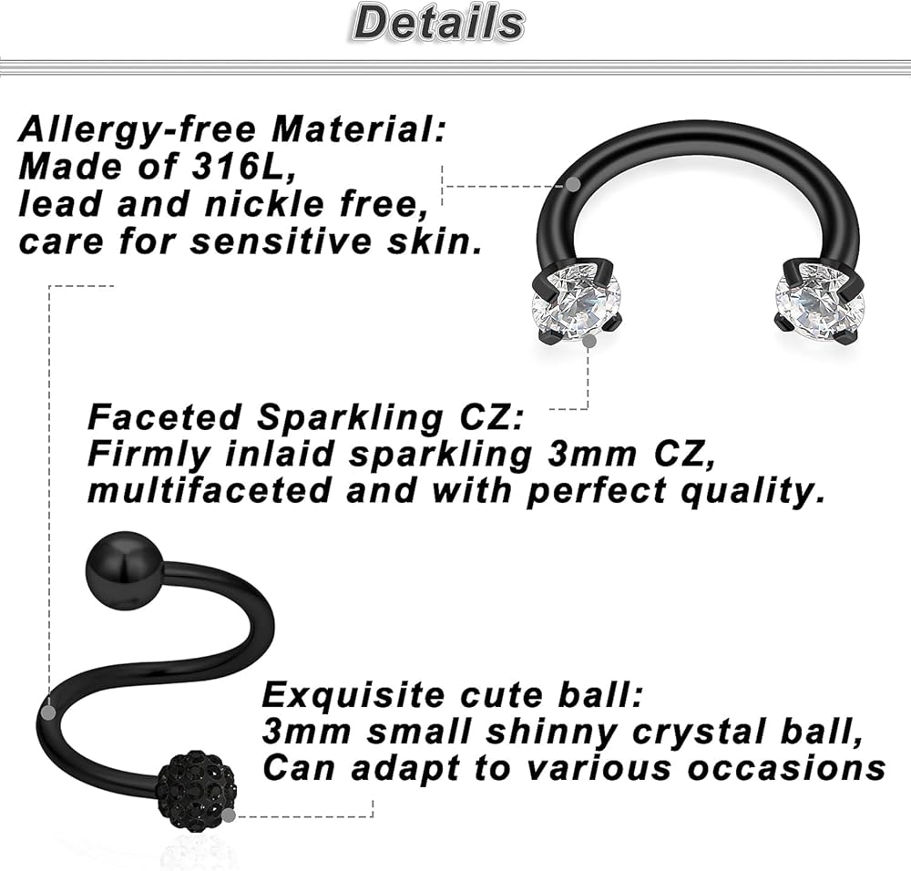 DELICATE BODY PIERCING--AAA+ Eye-catching CZ Inlaid, Great Workmanship and Won't Fall Out Easily;Cut and Dainty,Catch More Eyes on You.Individually Packed and Check One by One, Ensure Every Product come in Good Condition.