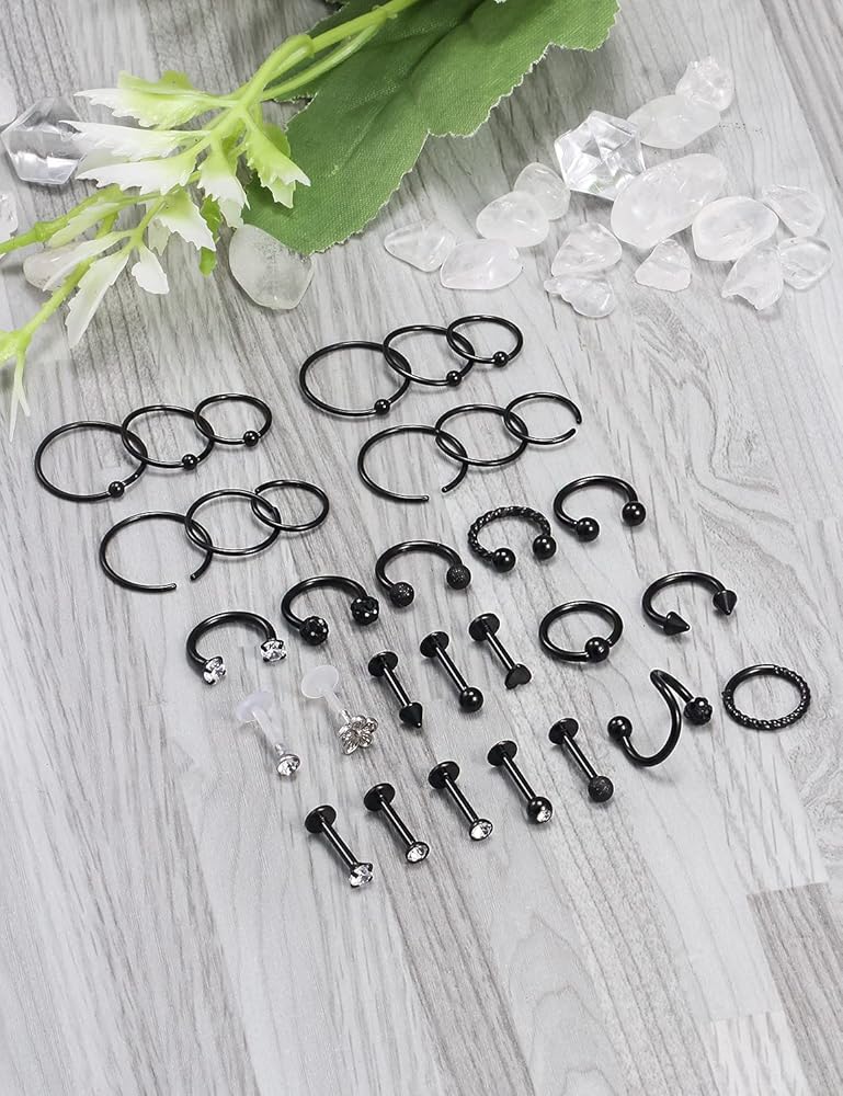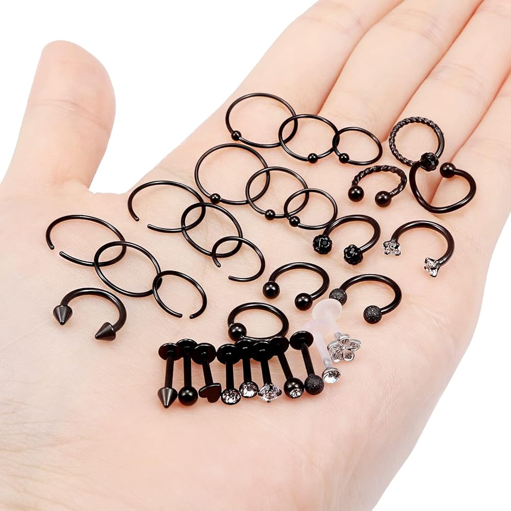 ECONOMICAL PIERCING SET--One Order Including 31 Pcs as shown in the figure. Exquisite Set in Reasonable Price, Deserve to Worn. Totally Different in Styles, Give You More Choices.