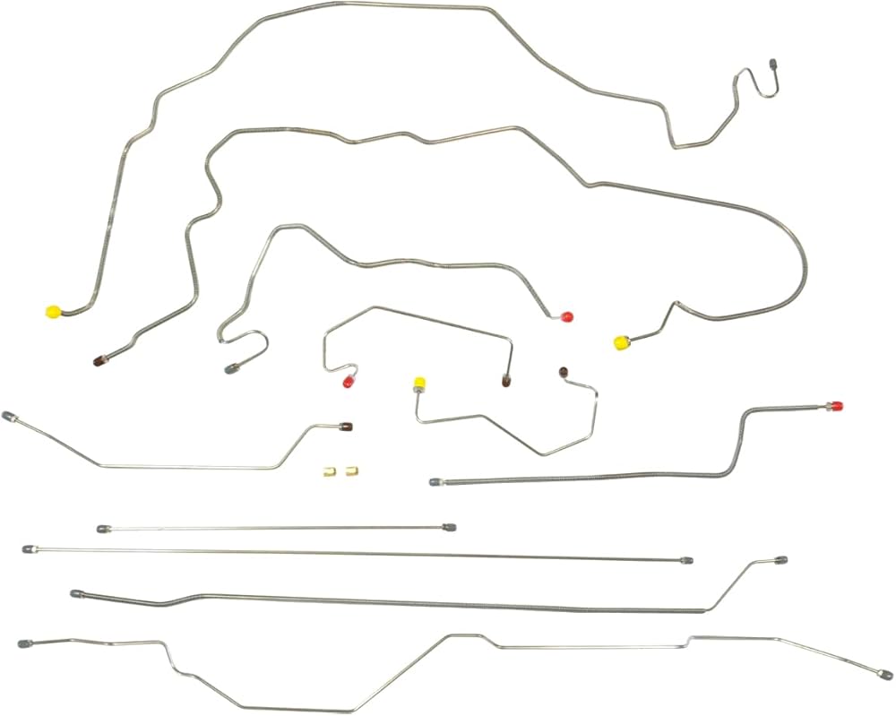 1997-2003 2wd Short Bed Std Cab, Rear Drum Brakes, 4 Wheel Abs Factory Power Disc Brake Line Set Complete Stainless Steel Factory Preformed Brake Line Set - Stainless Steel (Picture May Not Represent Actual Part) Manufactured By Inline Tube These Brake lines are preformed on our exclusive Cnc Computer Benders to the original factory specs with the correct color coated fittings and wrap where on the original. This is Inline Tube concourse restoration part. Outstanding quality and correct plating on all fittings Inline Tube exclusive - made in the Usa Dont settle for the competitors cheap hand bent replacement lines. Only Inline Tube Cnc computer manufactures brake lines exact to the factory originals in authentic tin-coated or premium stainless steel. Our sets come complete with all of the brake lines preformed, flared with fittings on the ends, ready to install on your car, just the way should be correct and complete.