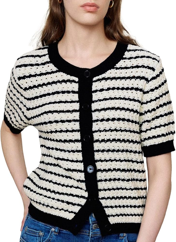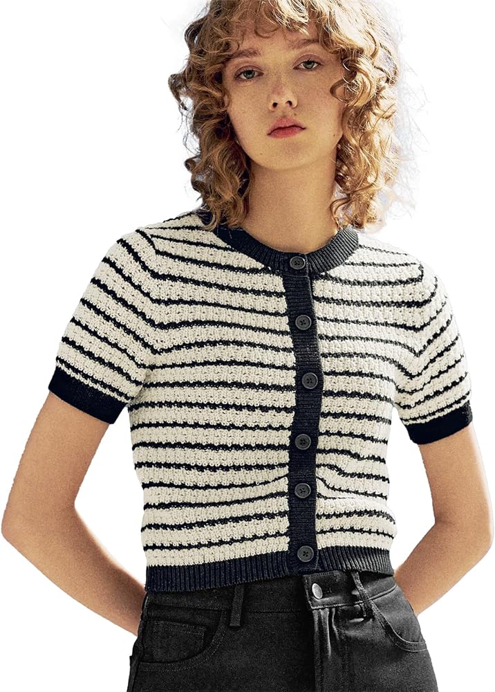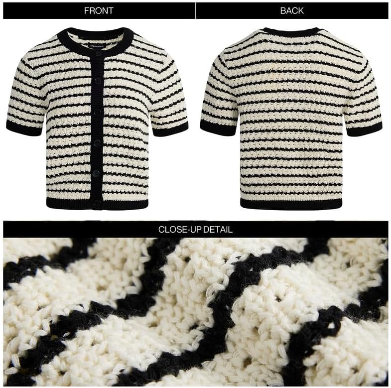 【TRENDY DESIGN】The women short sleeve cardigans adopt a special striped design in knit style, breaking through the traditional cookie-cutter solid color design. The cropped length, well-made buttons, open front, crew neck, ribbed cuffs, and hem with striped trim add a touch of elegance and fashion to you.