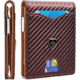 Enough Space: 12 Cards in total can be inseted in this lightweight and compact card holder wallet, including 2 card slots (exterior),9 card slots and 1 ID window (interior). This wallet is also equipped with a metal money clip inside.