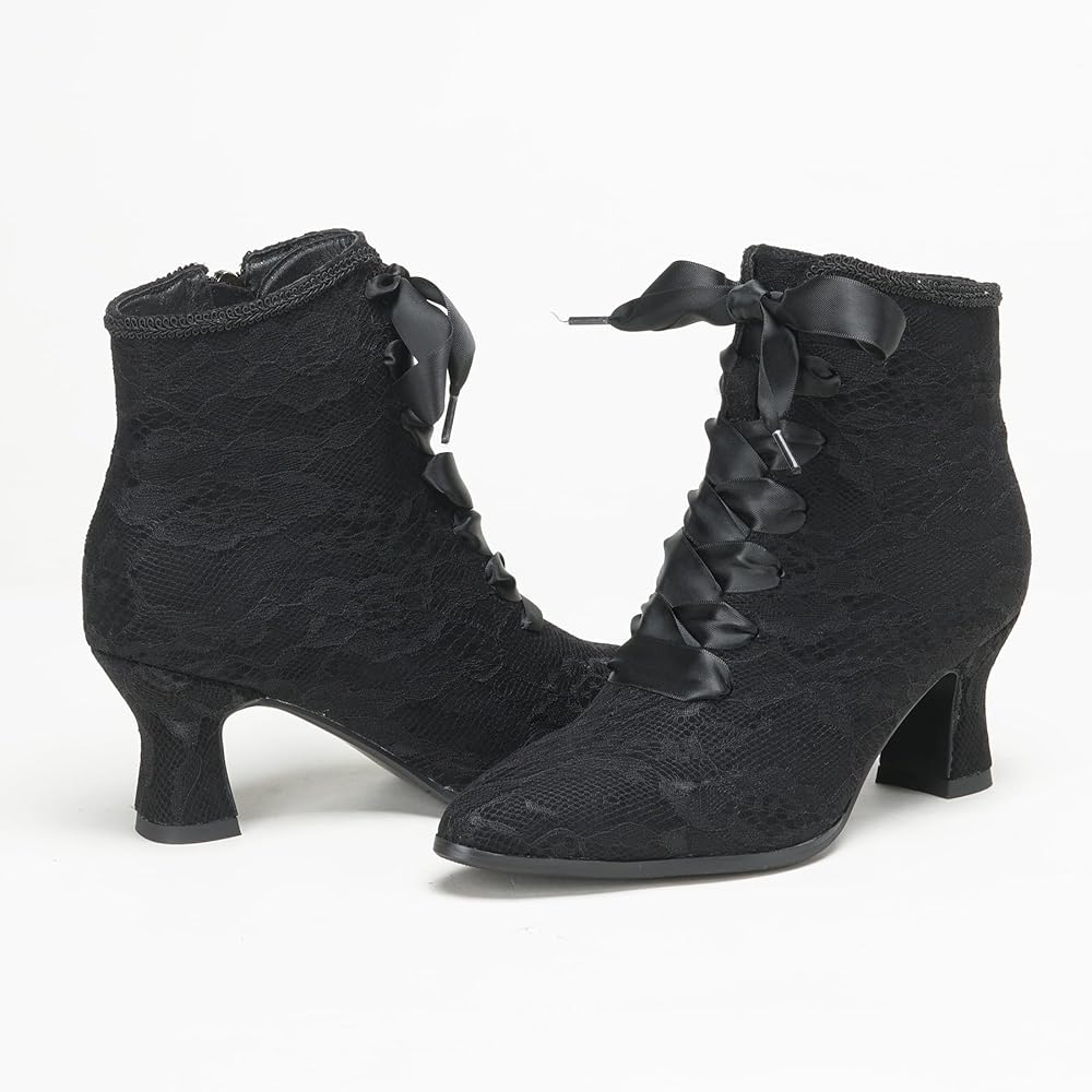 Versatile Style Statement: Lace bridal booties with off-white / Black tones pair effortlessly with bridal gowns, dresses, or pants. Perfect for weddings, halloween costume, cosplay, victorian events, or outings.
