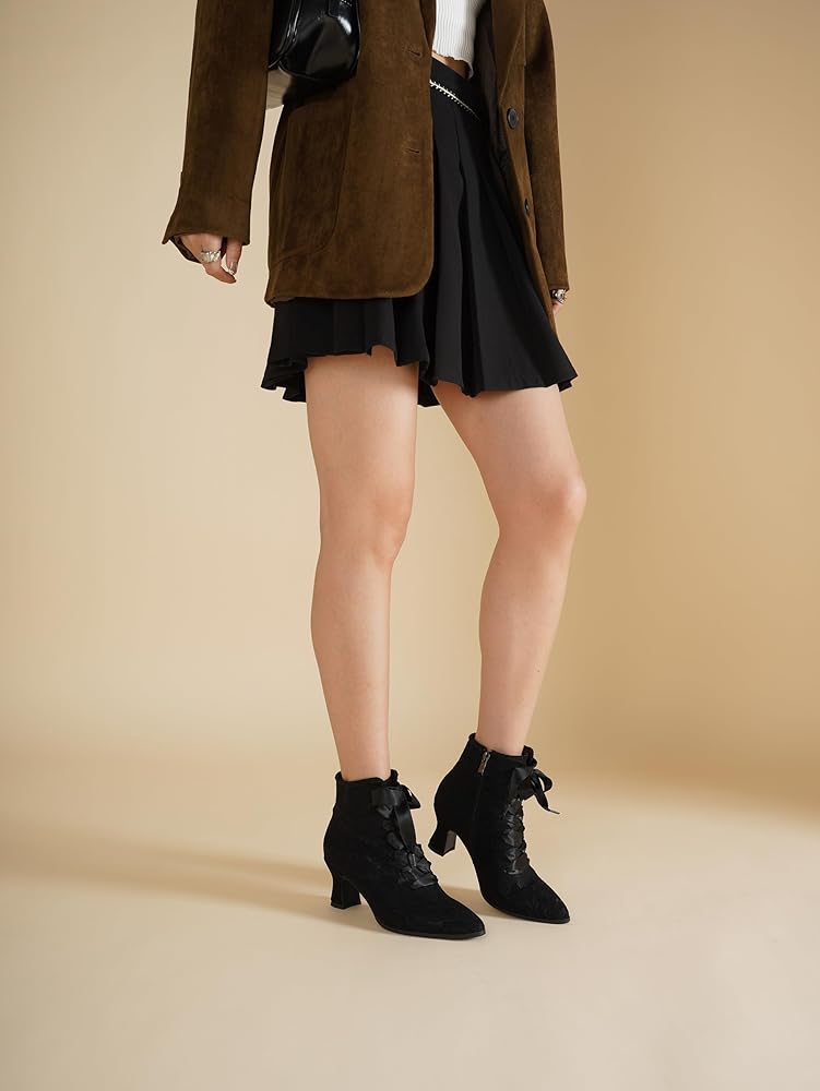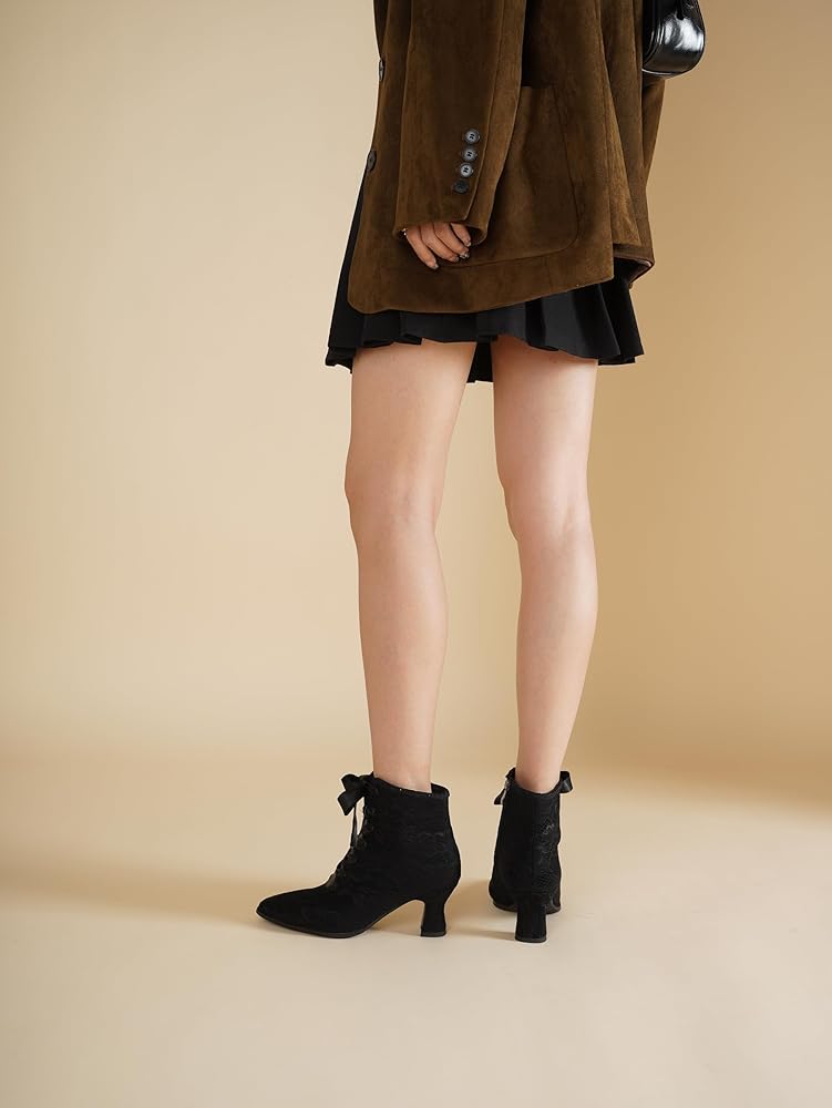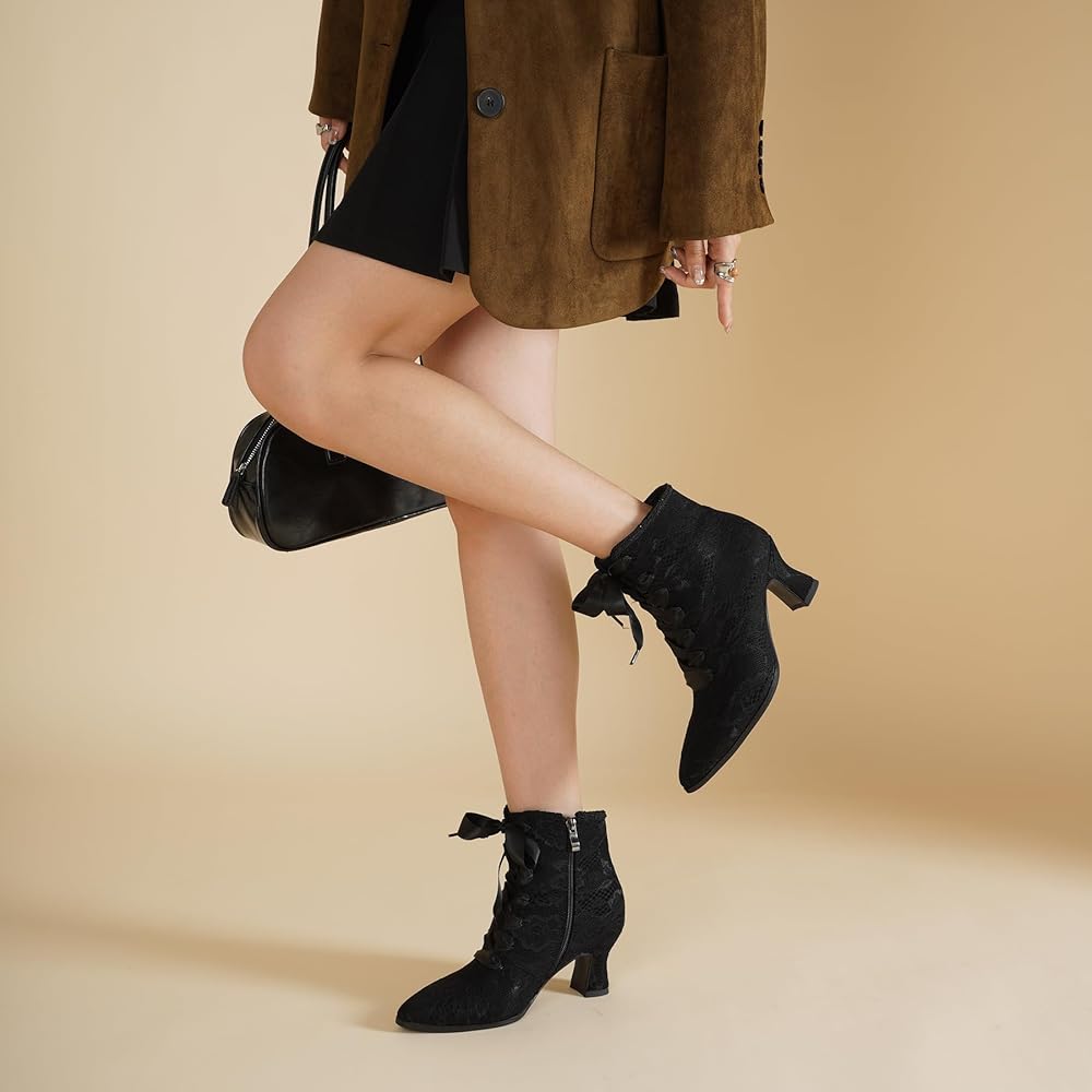 Timeless Bowknot Detail: Women vintage style victorian boots with adjustable satin ribbons and romantic lace blend vintage charm with modern style, ensuring an elegant statement.