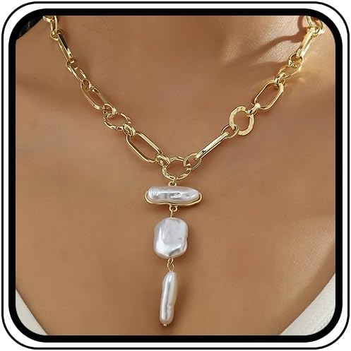 Bold Baroque Pearl Y-Choker: Hey, fashion rebels! This chunky gold pearl statement choker is a total showstopper. It features irregular baroque-style faux pearls strung on a gold link chain, forming a trendy Y-pendant that screams Y2K nostalgia