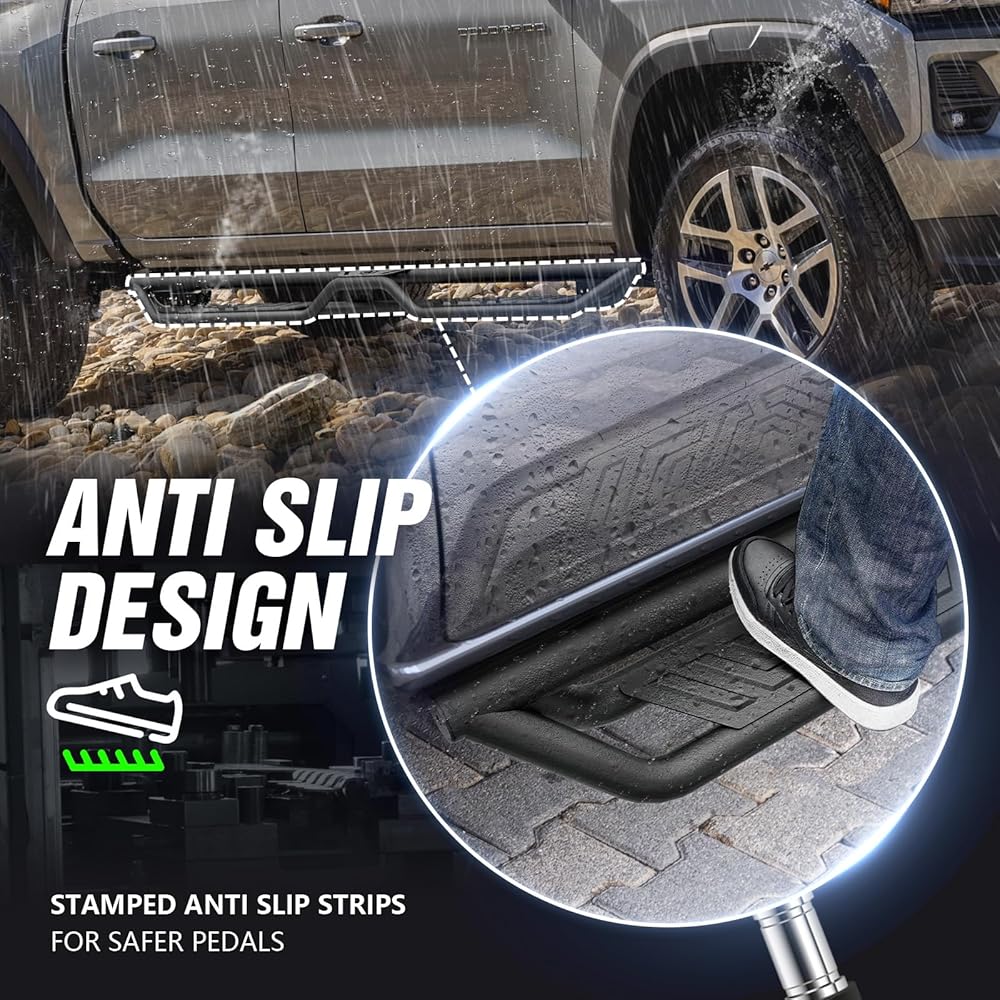 【Compatibility】: OBNAUX Two Stairs Design Drop Running Boards are compatible with 2015 2016 2017 2018 2019 2020 2021 2022 2023 2024 2025 Chevrolet Colorado & GMC Canyon Crew Cab (4 Full Size Doors). If you are not sure about your model, please check the cab dimensions picture.
