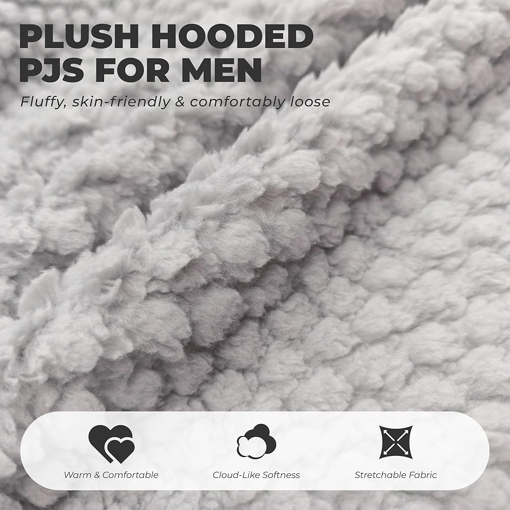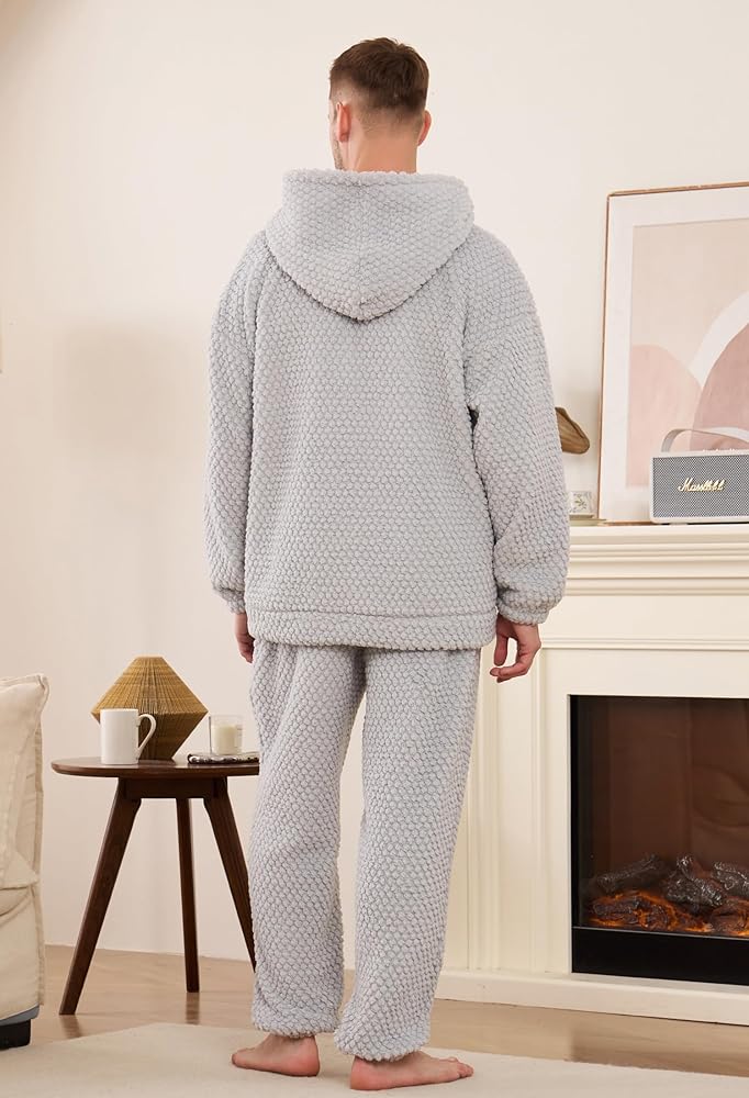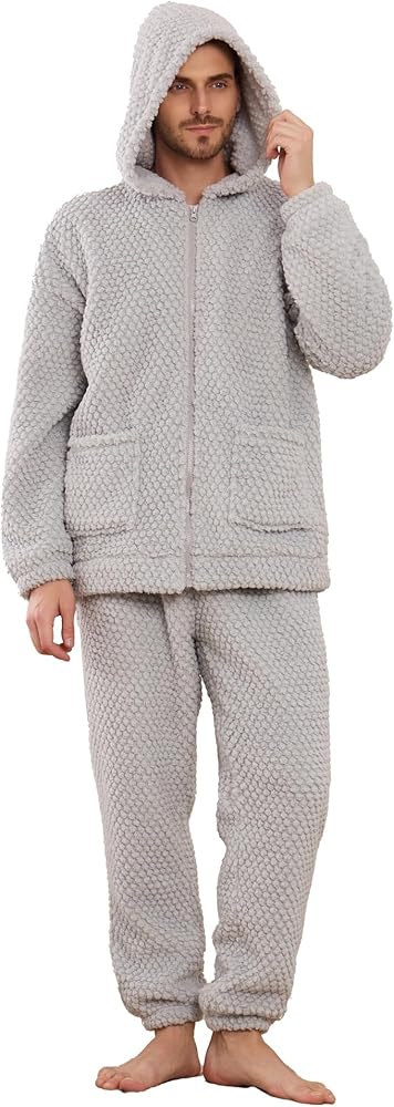 Cloud-like Comfort:The men's hooded zipper pajama set is crafted from plush fabric that feels like a cloud against your skin. It's fluffy, skin-friendly, soft, and warm.The loose fit provides a very comfortable wearing experience at home.