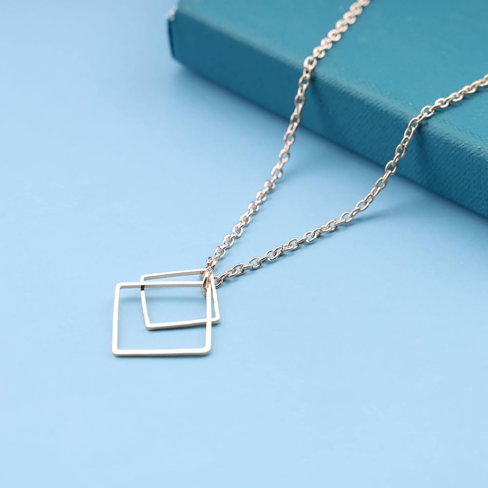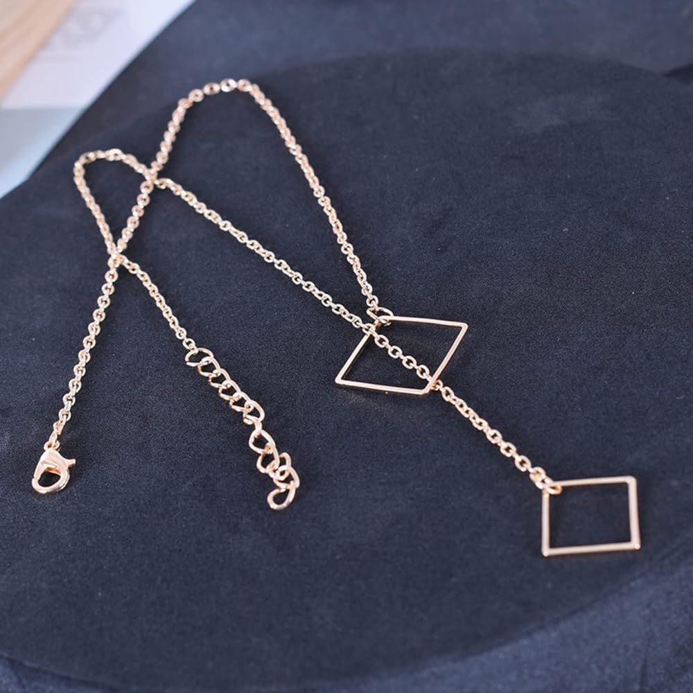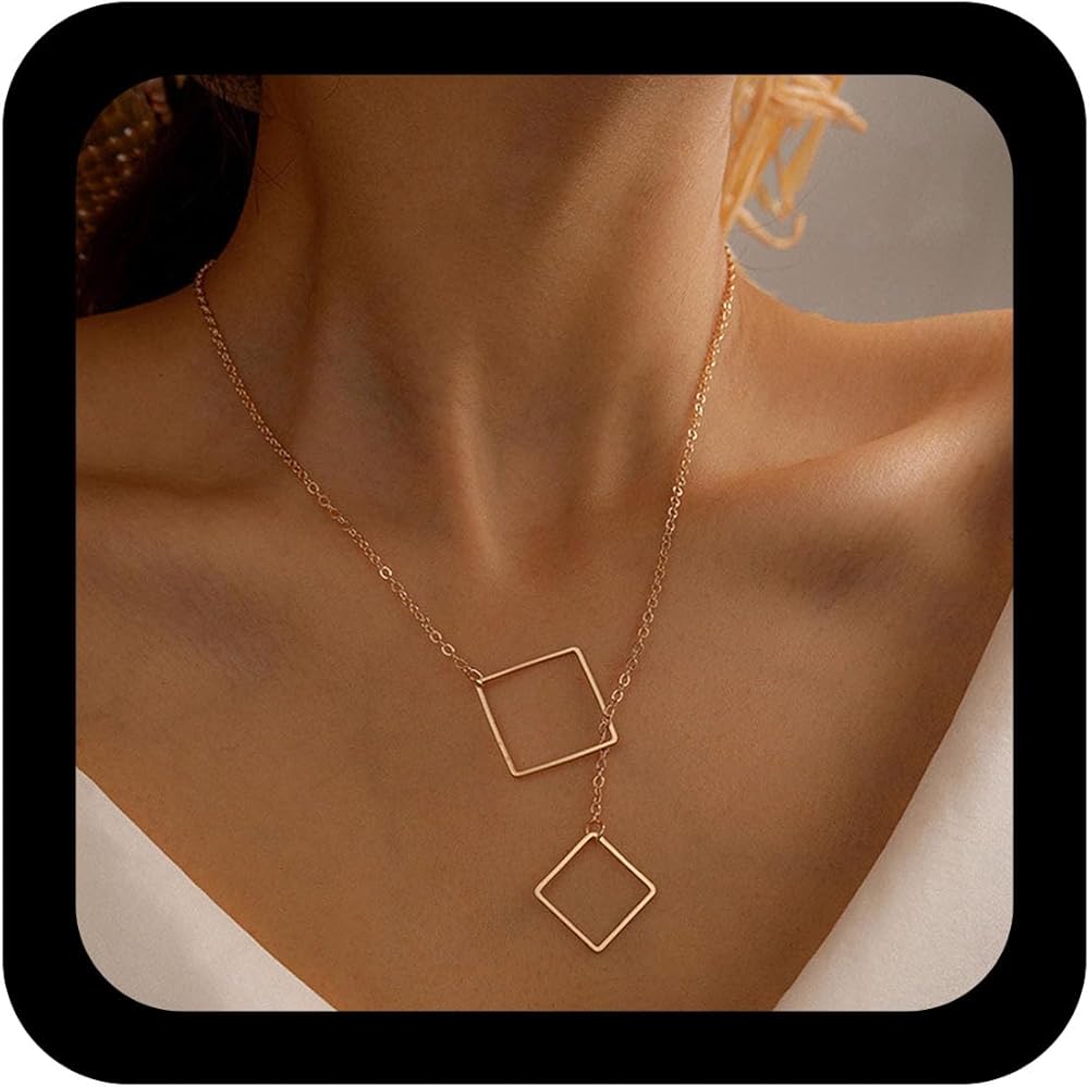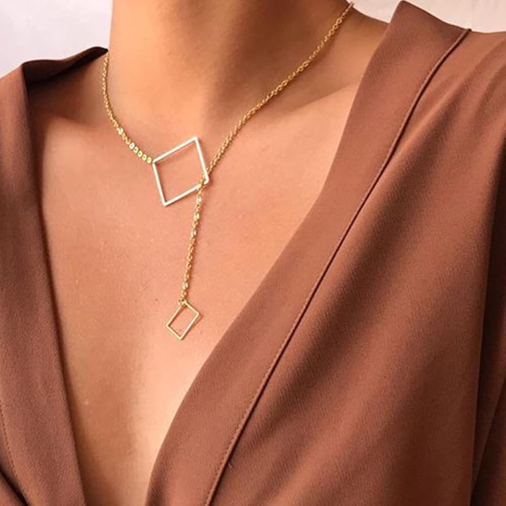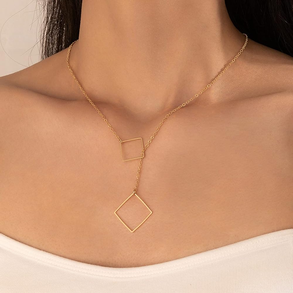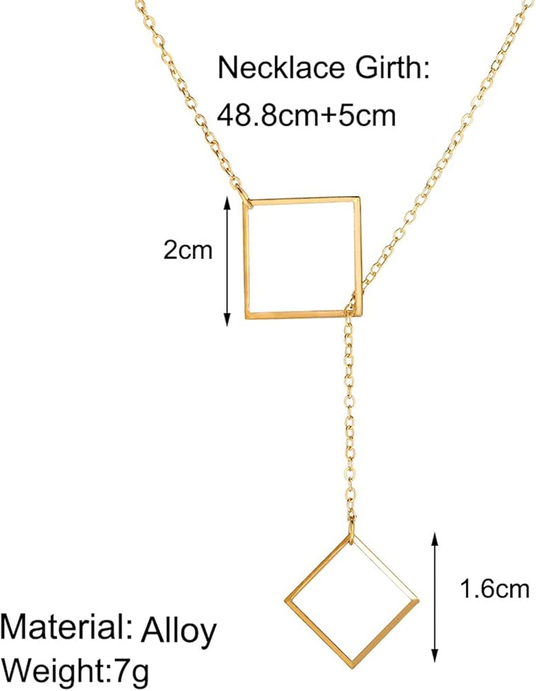 【Unique Design】This is an exquisite square Y necklace, with a simple 2 hollow square design, the exquisite Y necklace choker is very popular with girls.