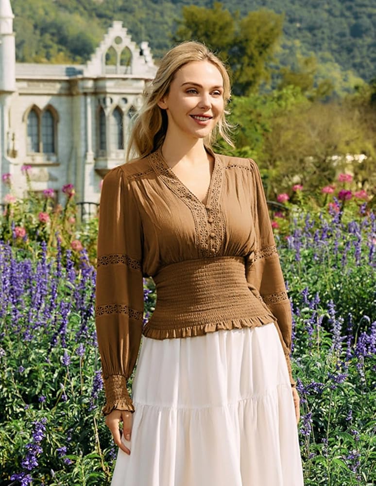 𝗖𝗼𝘇𝘆 𝗙𝗮𝗯𝗿𝗶𝗰: The renaissance tops made of skin-friendly and soft fabric, comfy To Wear in Spring, summer and fall