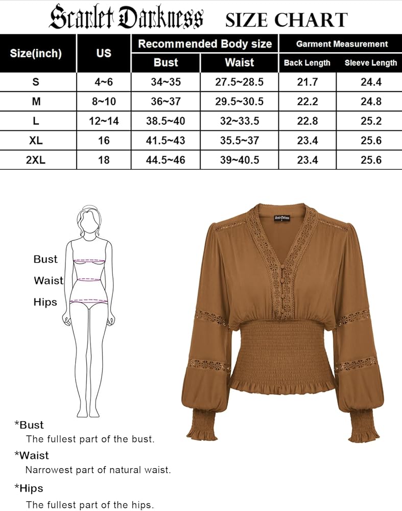 𝗠𝗮𝘁𝗰𝗵 𝗧𝗶𝗽𝘀: The peasant blouse can be match with Renaissance skirts, leather boots, suitable for outdoor play, photography etc; also easy to match with jeans, casual pants, high heels, etc, for vacation, work, dating and daily wear