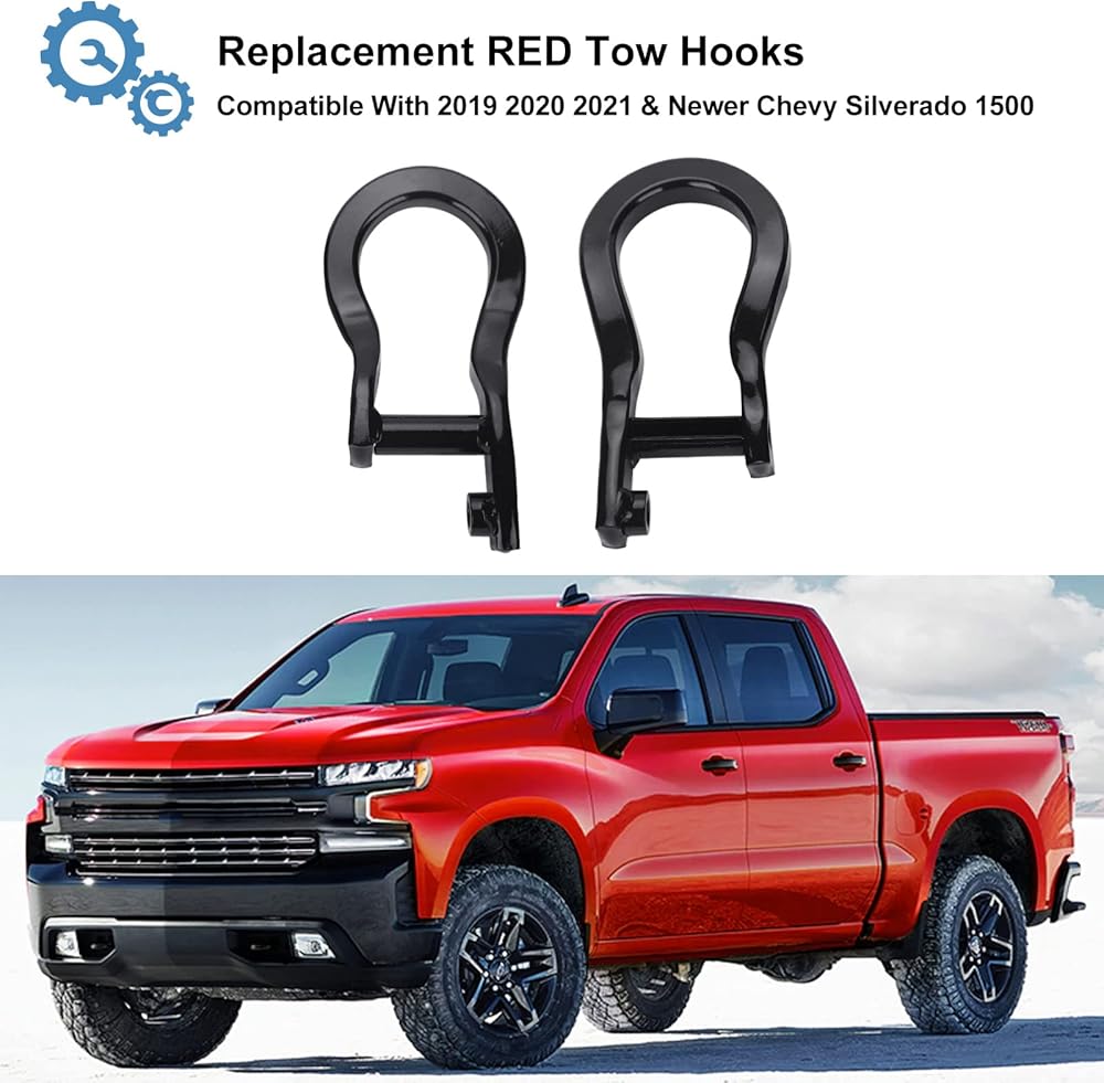 【FIT FOR】 -RED Tow Hooks Compatible With 2019 2020 2021 & Newer chevy Silverado 1500.