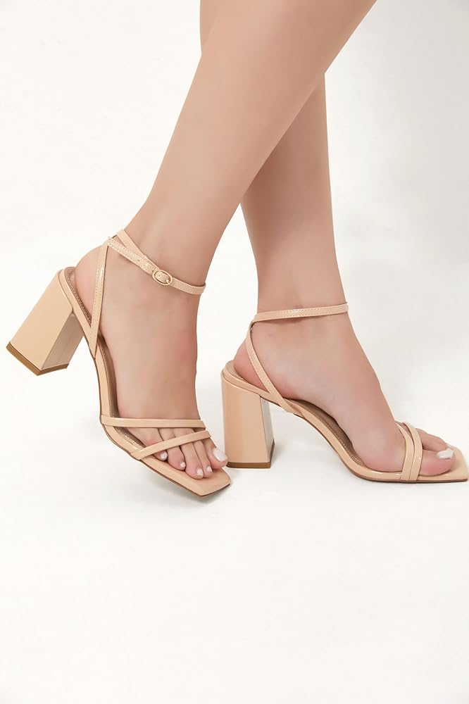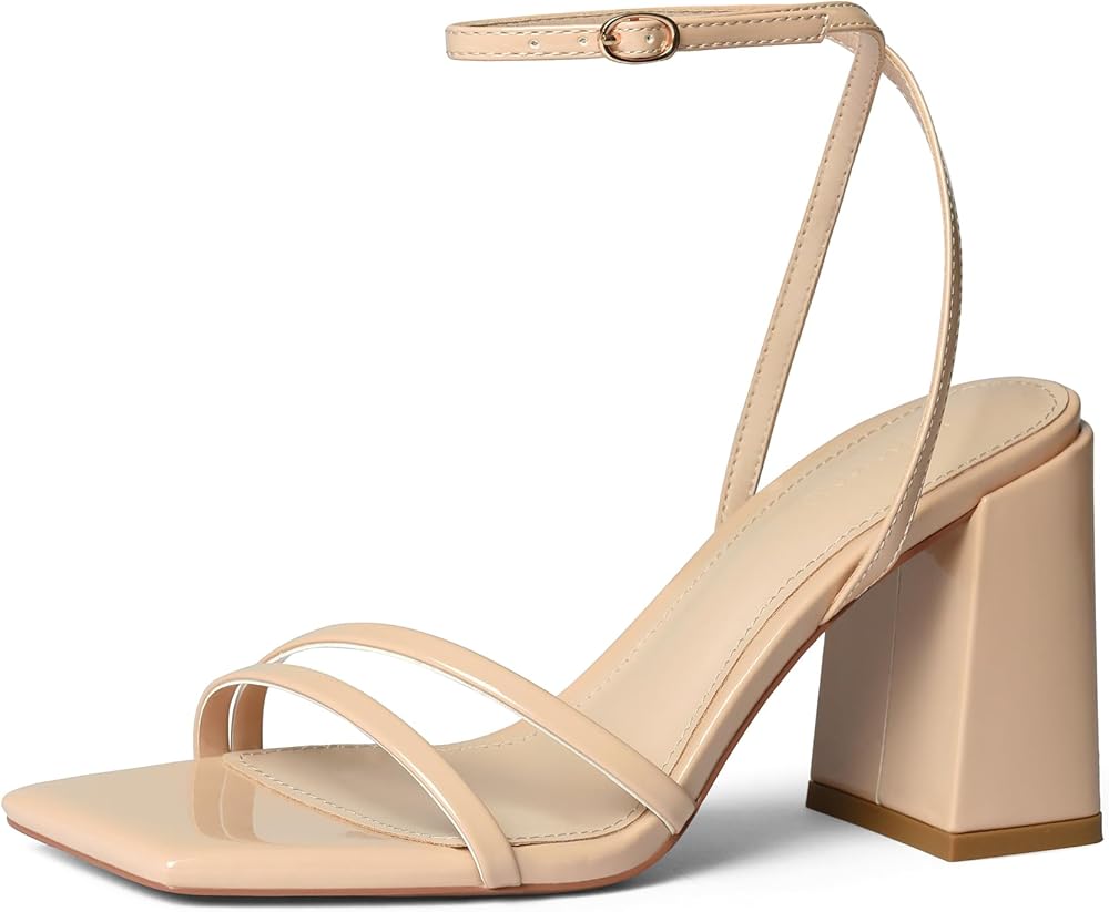 iiimmu High Heeled Sandals: Thin ankle strap with square open toe detail, lends an elegant look to this sandal. The soft rubber sole adds a chic touch, making them ideal for weddings, parties, and prom.