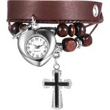 VINTAGE STYLE - Multi-layer braided leather strap rope with bronze color metal watch body, with bronze color butterfly charm