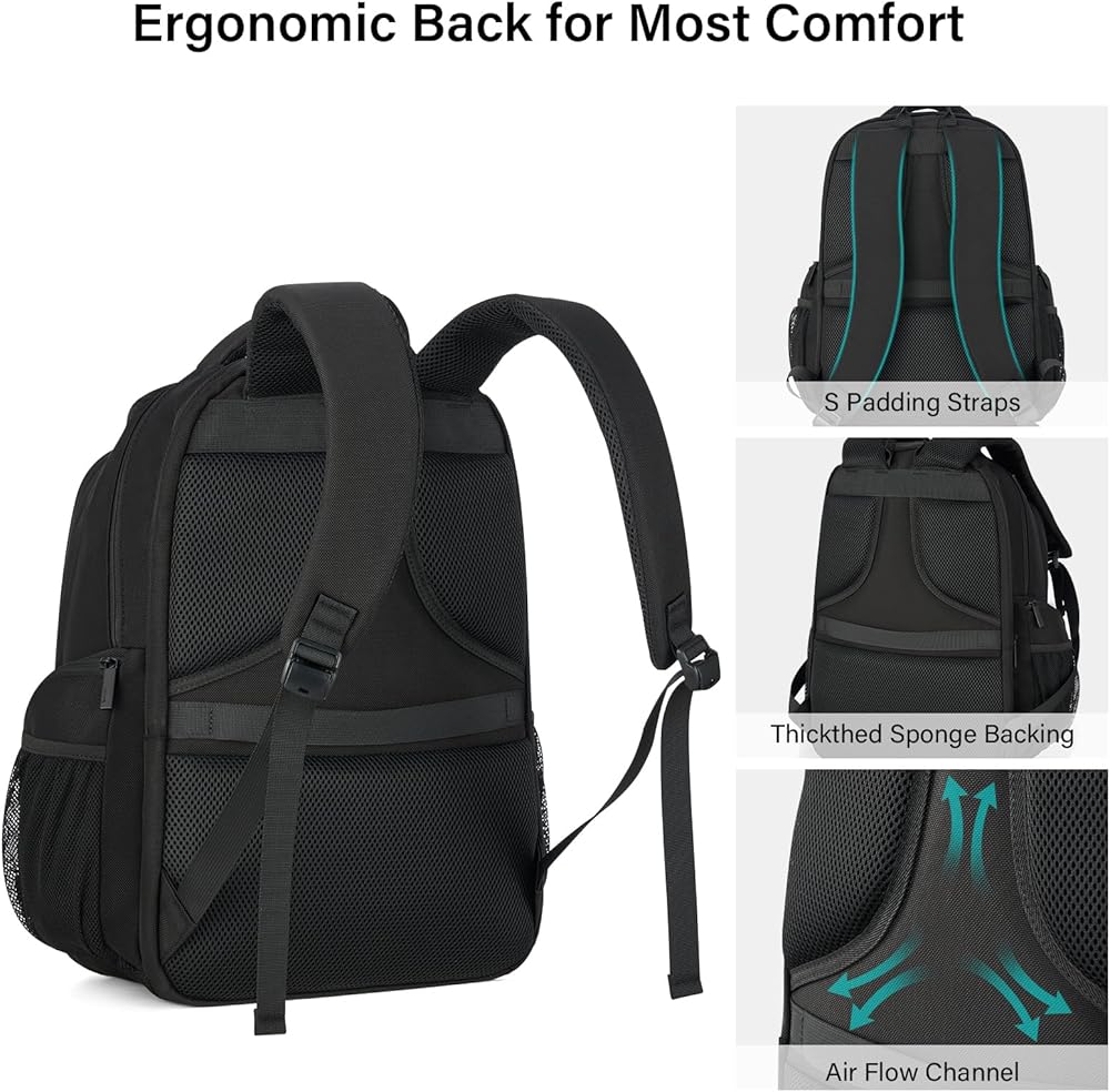 Lightweight Comfort for All-Day Use: Our computer backpack is crafted for comfort, with a breathable cushioned back panel and padded adjustable straps that evenly distribute weight. Whether commuting, running through airports, or wearing it all day, this work backpack minimizes shoulder strain
