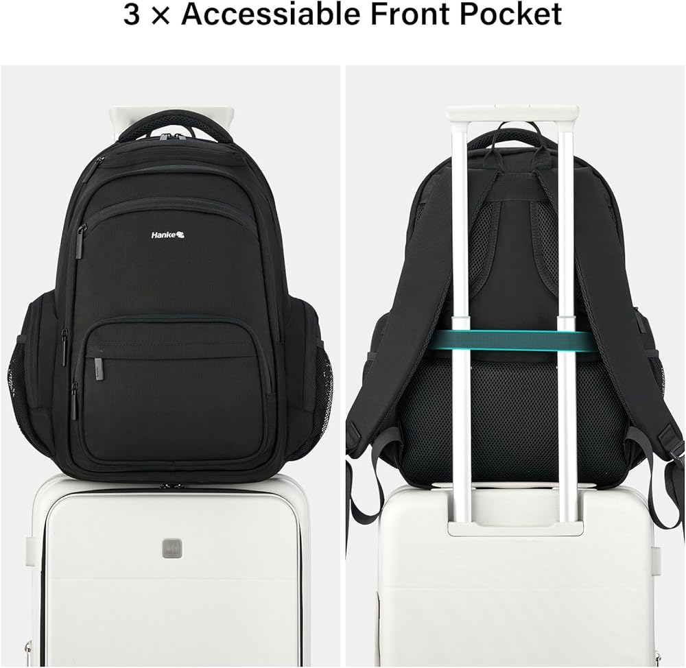 Smart Multi-Pocket Organizer: Hanke college backpack for women and men features a padded 15.6" laptop compartment, iPad sleeve, dual front pockets, side mesh pockets, and internal slots for small accessories—no more digging mid-flight. A true travel laptop backpack designed for practical organization