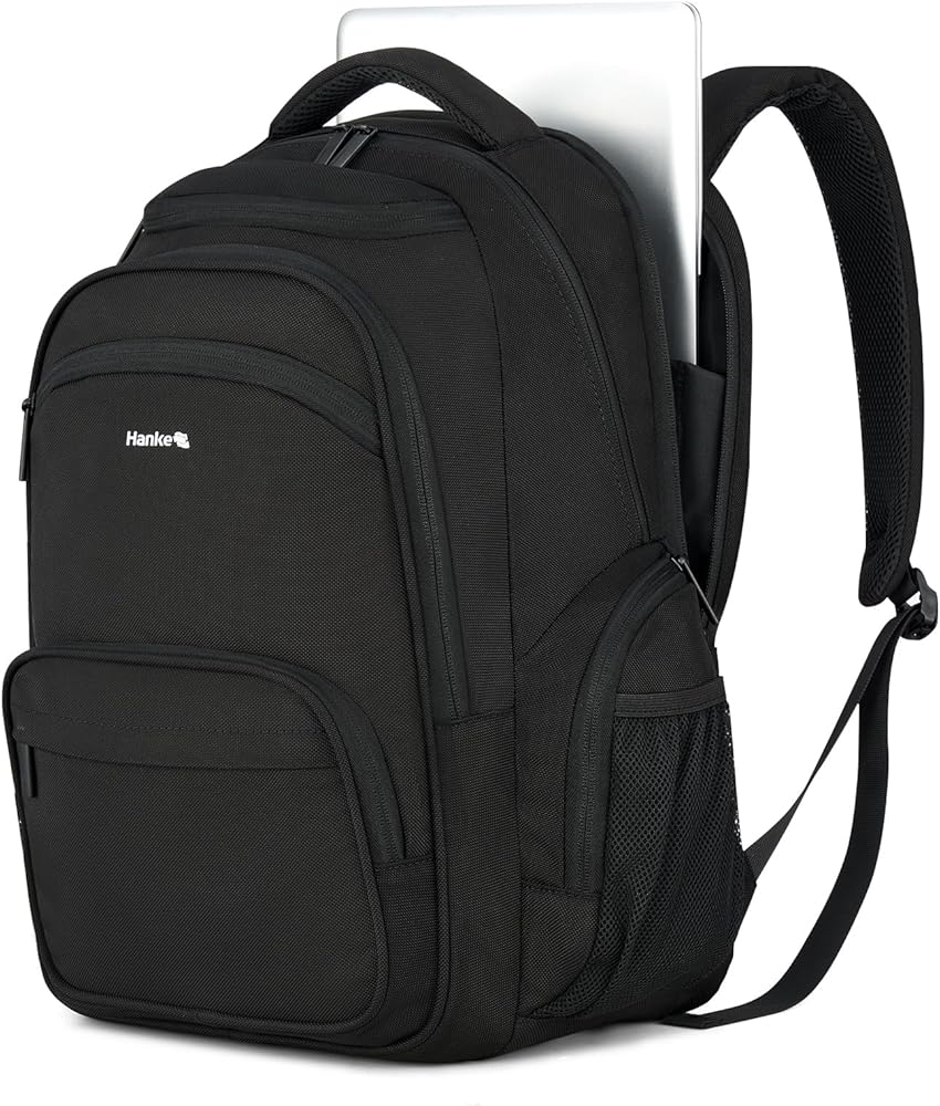 Hanke College Laptop Backpack Multi-Pocket, 18-Inch Large Travel Backpack for Men Women, Water Resistant College Bookbag for 15.6 Inch Laptop, Casual Daily Personal Item Size Airline Approved,Black