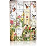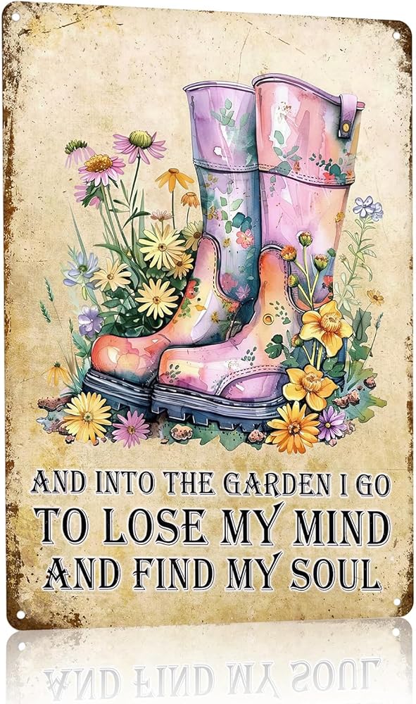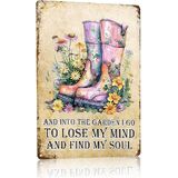Garden Metal Tin Sign 8x12 Inch, Vintage Floral Rain Boots Wall Decor with Inspirational Quote Into the Garden I Go, Rustic Farmhouse Gardening Sign, Shed Patio Porch Outdoor Bar Cafe Wall Decoration