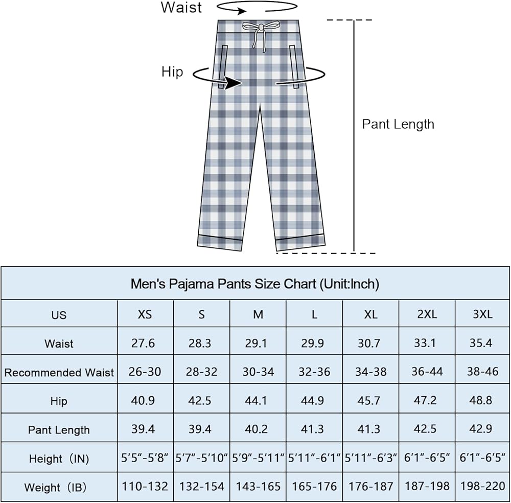 【Skin-friendly Fabric】: The men's sleep pants are made of 100% pure cotton. As pajama pants they are super soft, skin-friendly, breathable and moisture wicking. They make your all day fresh and comfy and give you a better night's sleep.