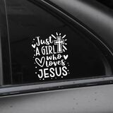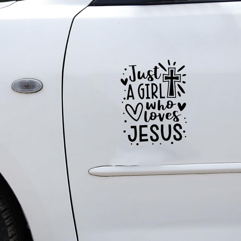 Just A Girl Who Loves Jesus Decal Car Sticker, 6.1"×4.6" Jesus Cross Vinyl Sticker Car Bumper Decal, Waterproof Auto Exterior Decoration Decals for Cars, Truck, Wall, Window, Laptop (Black)
