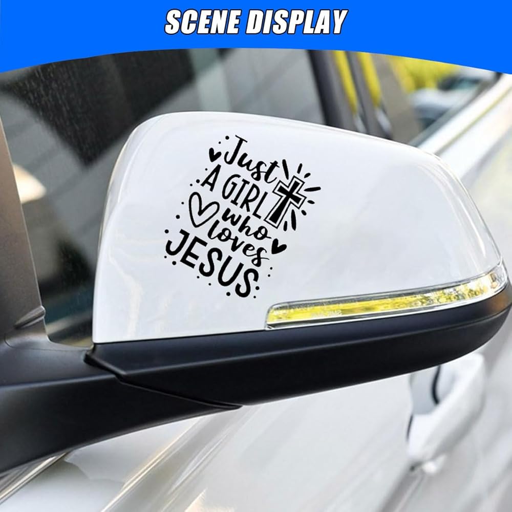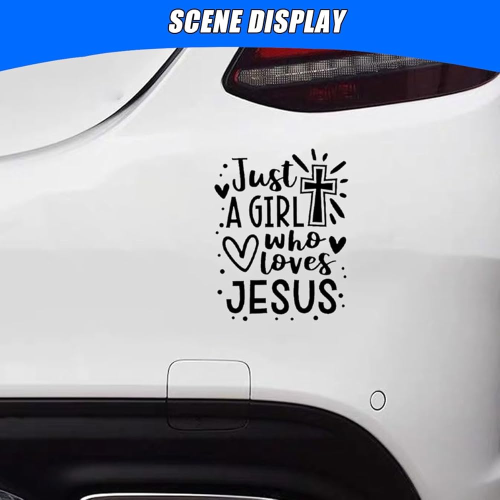 【Faith and Love】: The car sticker features a cross pattern combined with the English element "Just A Girl Who Loves Jesus", when pasted on your beloved car, it instantly becomes a unique carrier for conveying positive energy and faith, it showcases the owner's firm belief in their heart, and the warm emotions it exudes can also infect those around them., every trip is then filled with spiritual strength.