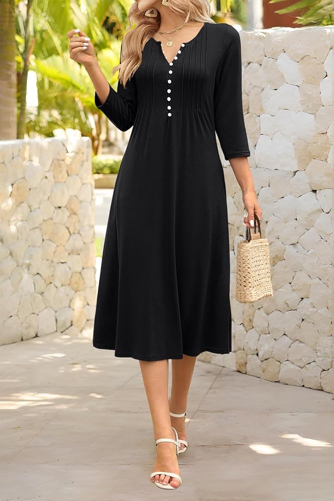 Multi Occassions- 3/4 sleeve dress for women has a stylish design and is suitable for all seasons, perfect for daily wear, shopping, beach, vacation, church, party, work office, dancing, lounging and baby shower.
