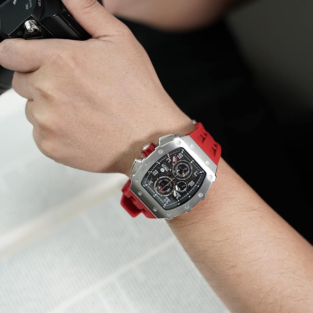 [Replaceable Strap - Top Silicone] Silicone watch bands is about 21cm (8.26in) in length and 2cm (0.78in) in width. It is anti-allergic, waterproof and sweat-proof, comfortable, breathable and wear-resistant. There are also interchangeable TSAR BOMBA straps in a variety of colors.