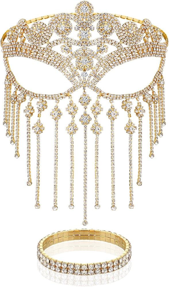 Rhinestone Jewelry Set: you will receive 1 piece of rhinestone chain face mask, 1 piece of single row rhinestone choker necklace and 1 piece of 3 rows rhinestone bracelet; The shiny combination will show your beauty and charms, making you the focus of the party