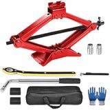 WHAT YOU GET : 1x 2.5T Scissor Jack; 2x Rubber Pad; 1x Ratchet Wrench; 1x LugWrench; 1x Pencil Tire Pressure Gauge; 1x Gloves;1x Storage Bag.The compact package is perfect for placing in the trunk or garage, ready to tackle any emergency repair situations