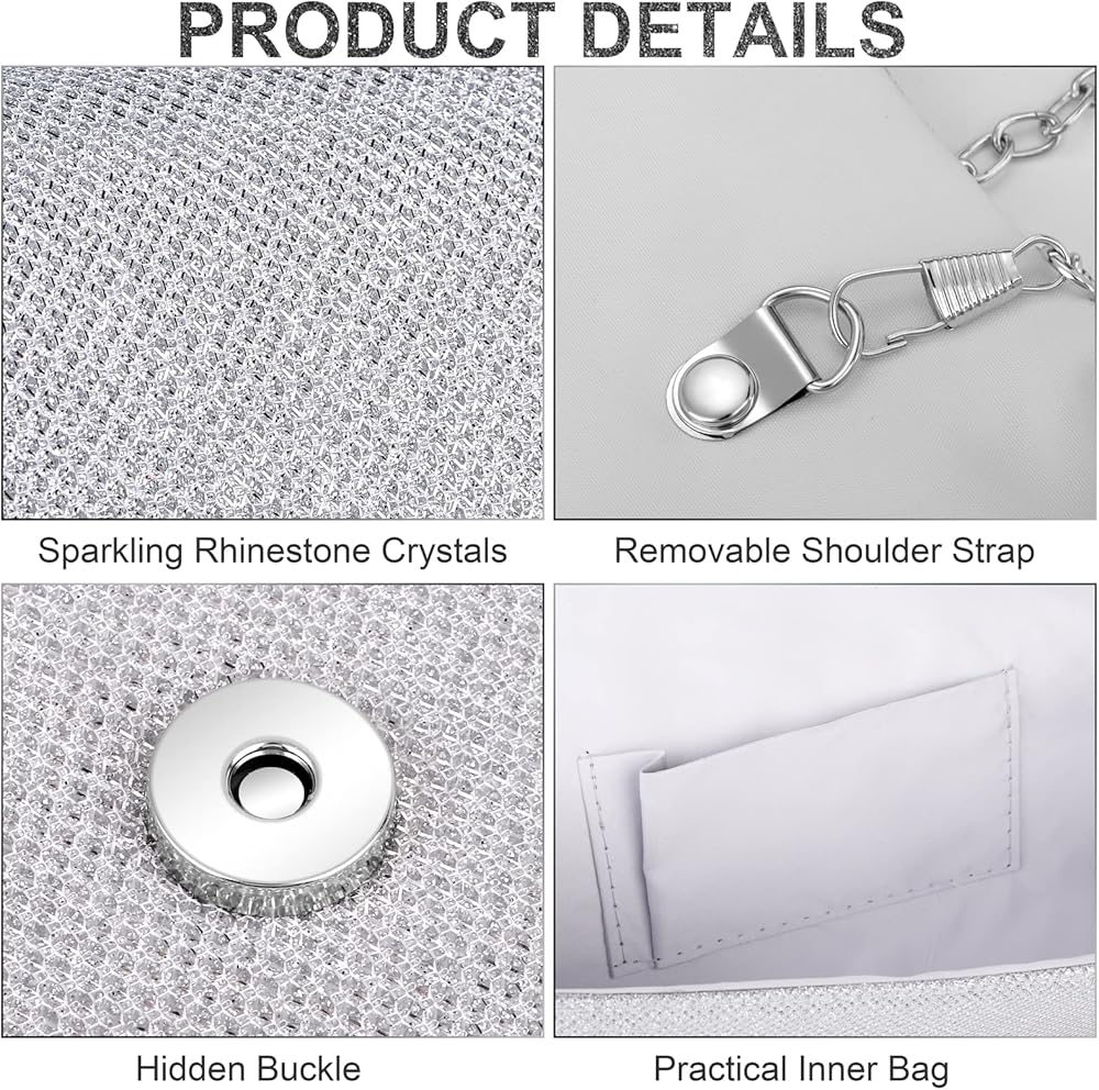 Delicate purse: the purse is designed with rhinestone crystals, sparkling and attractive, which can be grasped by hand or slung over your shoulder with a detachable chain, stylish and practical; in addition, the designs of front flap and magnetic buttons make it easier to use in various occasions