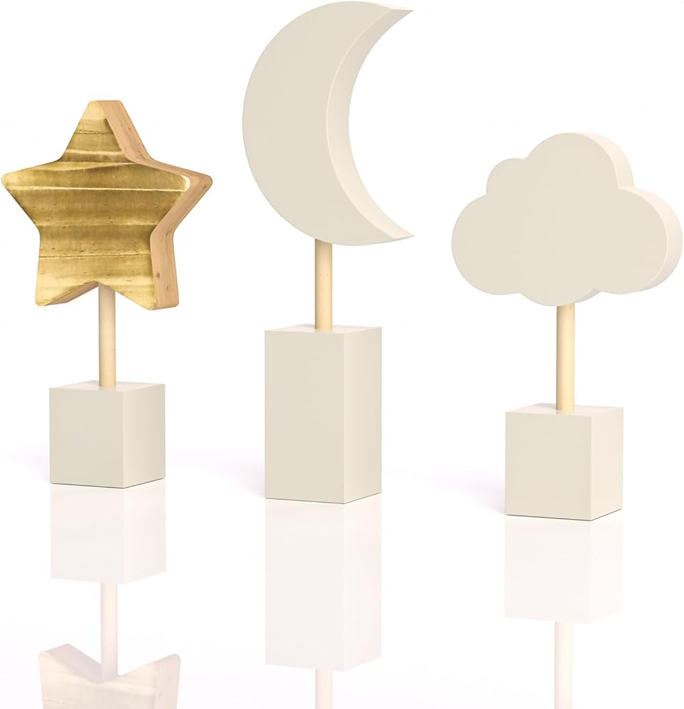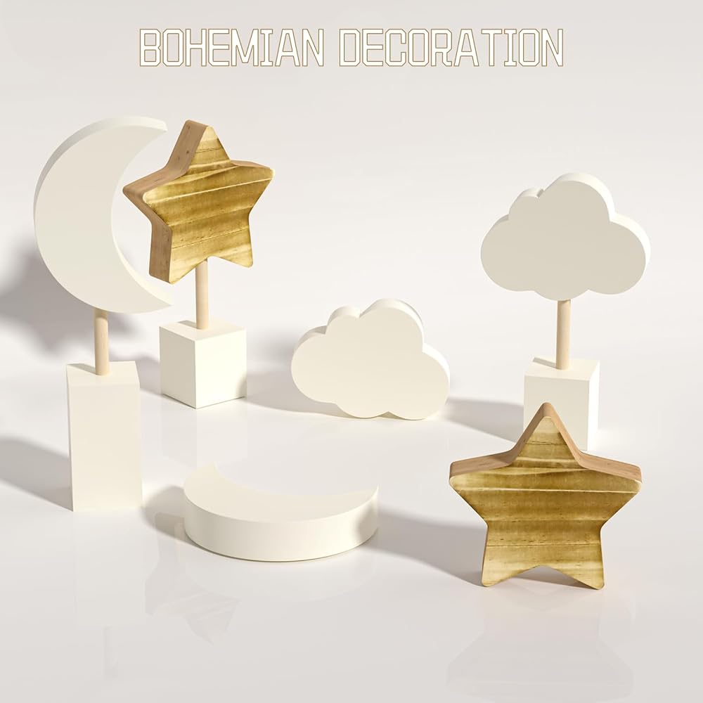 ⭐️Carefully Designed Sizes: Moon and stars nursery decor are 8 inches, 9 inches and 10 inches in height. Boho baby nursery decor sizes are carefully designed to fit just right in any position. Whether on a nightstand, bookshelf, floating shelf or dining table, moon nursery decor will match perfectly.