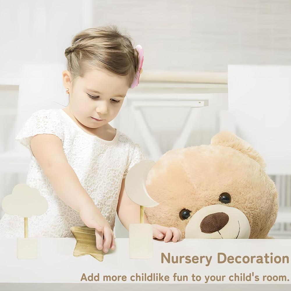 ☁️Cute Moon and Stars Decor: The sky nursery decor set includes 3 pieces of wooden room decorations. Moon nursery decor will be more cozy and cute when placed in your baby's room. The cute cloud star and moon shapes will bring a natural childish look to the room.