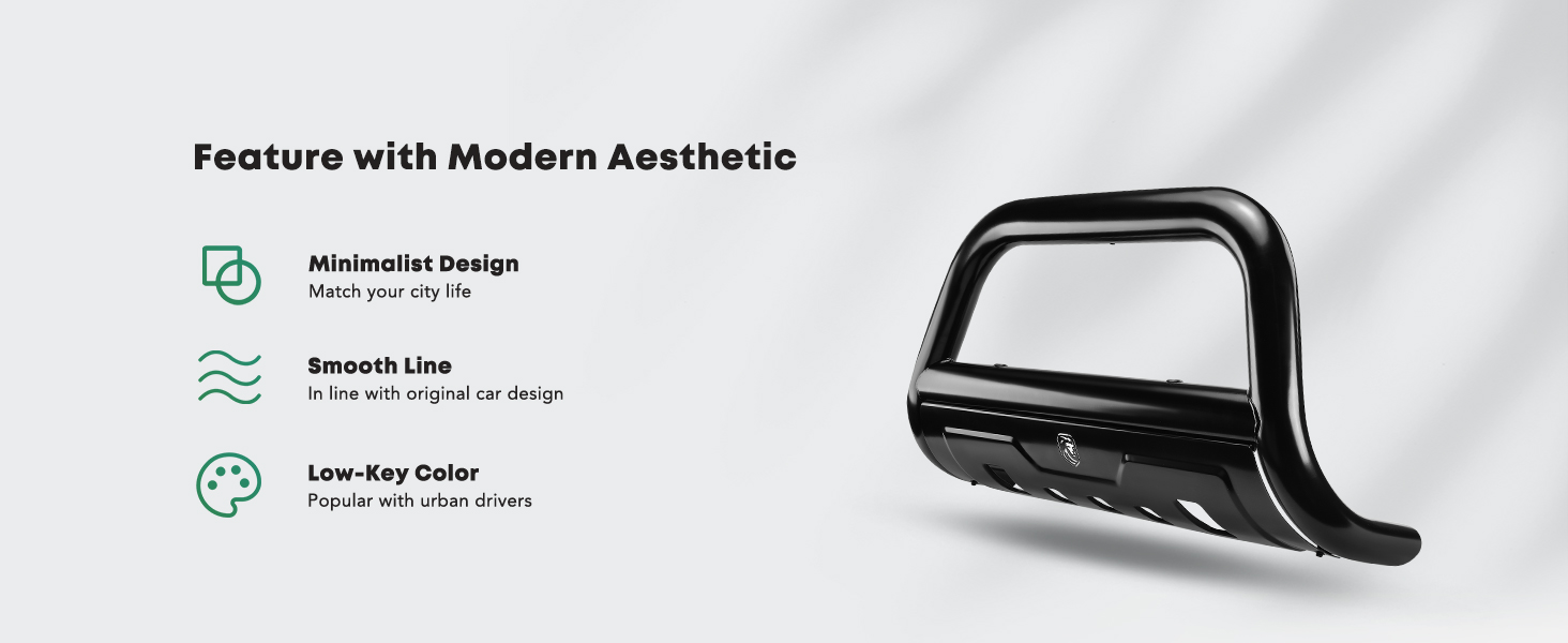 Off-Road Look: Grill Guard brings out a strong look for trucks. Alloy Steel features better strength for Front Bumper Guard. And Semi-gloss Black Powder finish with more masculine feel to fit off-road pickup. Advanced CNC bending + seamless welding achieves a balance between beauty and reliability