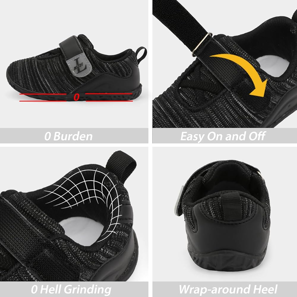 Non-slip and Durable: EVA outsole features stronger traction and wear-resistance for the baby sneakers. This toddler sneakers provides excellent shock absorption performance. The barefoot shoes for kids can reduce the burden on the toddler's feet
