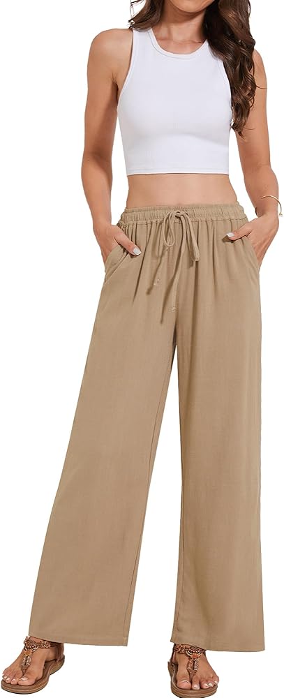 Design: High waist design with drawstring adjustable waistband for perfect fit. Wide leg design drapes beautifully from hip to leg. Two side pockets and one back pocket add more functionality for daily wear.