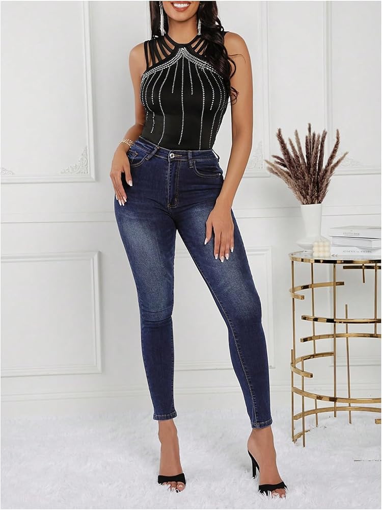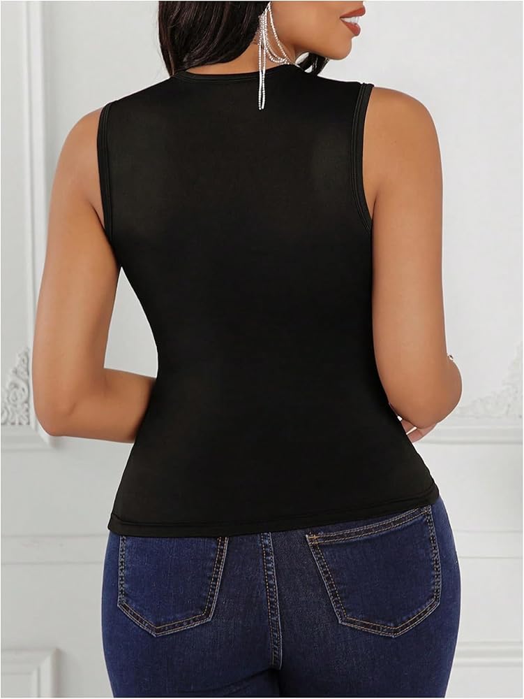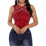 - Features: Rhinestone, cut out, round neck, sleeveless, slim fit, going out tops for women, womens tops, fashionable
