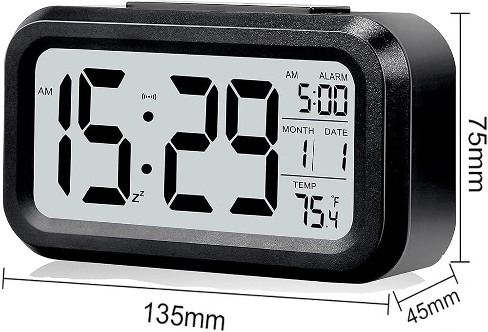 Compact Design: This LCD smart digital alarm clock features a sleek and compact design, perfect for desktops, nightstands, and office spaces.