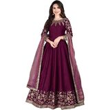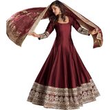 Top :- Silk Chiffon Kali With Silk Vichitra, Sequence & Embroidery Work || Bottom :- Santoon || Dupatta :- Embrodered Chiffon , Pure Maslin Digital Four Side Jeqaed Lace || Size :- Max up to 46" Inches || Work :- Heavy Embroidery Work || Style :- Anarkali Gown Suits || Type :- Ready to Wear ||