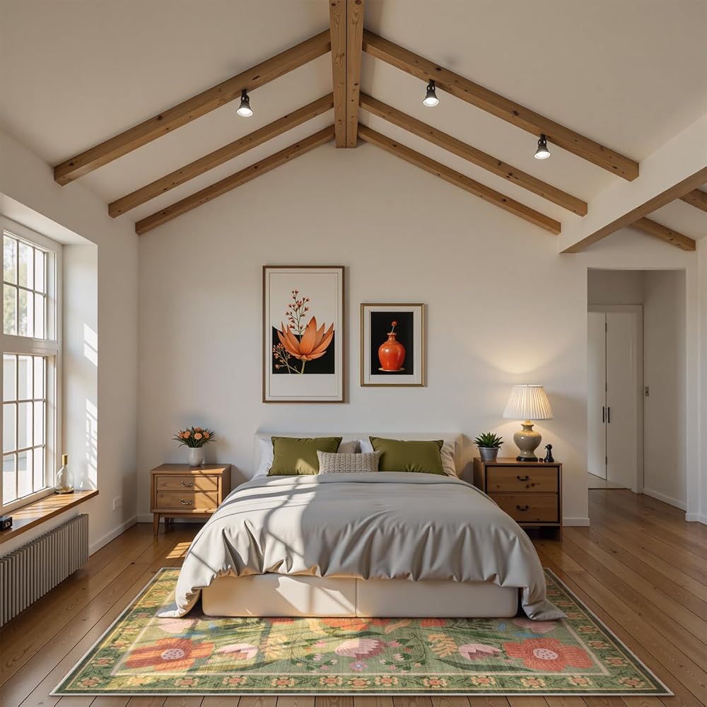 【Important Note】: For convenient packaging, our floral rugs are foldable. Any creases from folding will naturally disappear over time. Please also note that slight color variations may occur due to lighting and display differences.