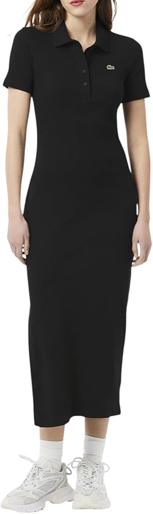 This long polo dress, crafted from organic cotton rib, combines Lacoste's signature sportswear style with contemporary slim-fit design, offering a chic and sustainable option for everyday wear.