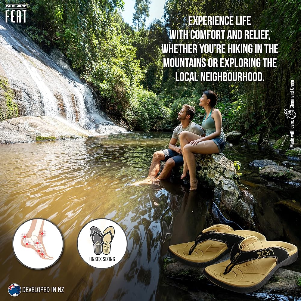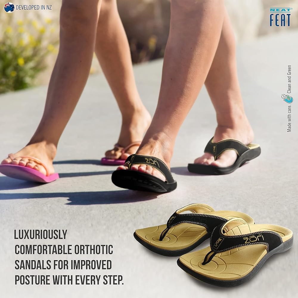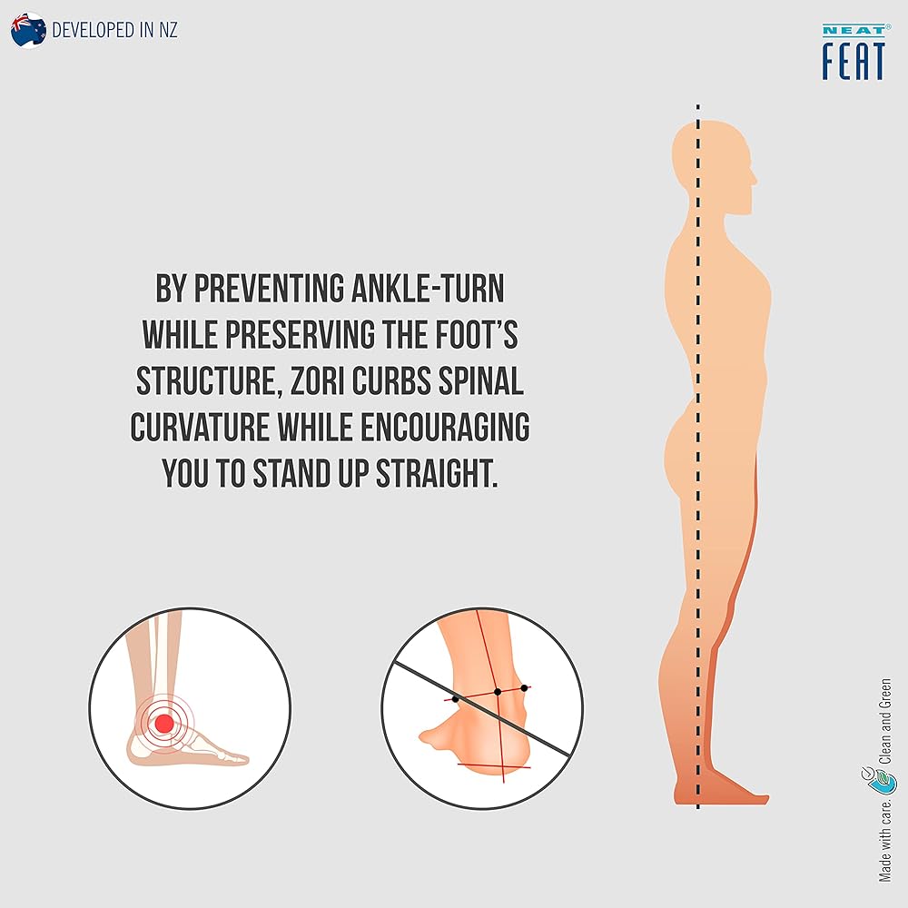 REDUCES FOOT/LEG/HIP AND BACK FATIGUE: The Neat Feat Zori Sport Sandals were made to provide excellent orthotic support for any foot type. This specialized design promotes walking correctly as well as good posture to prevent curvature of the spine.