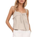 Feature: This linen tie front backless tank top features a sweetheart neckline, open back, sleeveless design with a flowy, loose fit to keep you cool on hot days. The bow-tie detail at the front adds a cute and trendy touch. This trendy square neck loose camisole is the perfect everyday staple for summer
